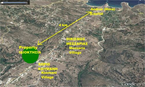 Access by car is not feasible yet, but the municipal authorities plan to open it. Within 100 meters is the nearest parking area for cars. The property is located in Messaria, a village approximately 4 km from Andros Hora, which has two of the most beautiful beaches on the island (Nimporio Beach and Paraporti Beach). Hora is considered the home of many famous Greek shipowners. The asking price is 55.000 euros.