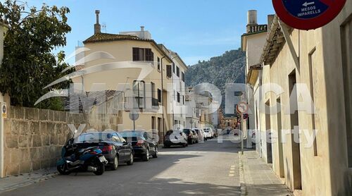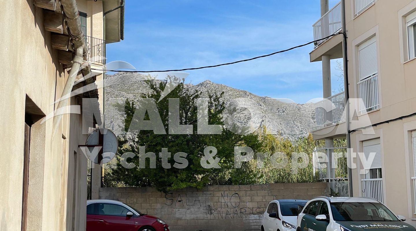 Urban building plot with approved project in Pollensa; approved to build a detached single-family house with three floors. With views of the Sierra de Tramuntana. near the Roman Bridge and the future headquarters of Colonya.