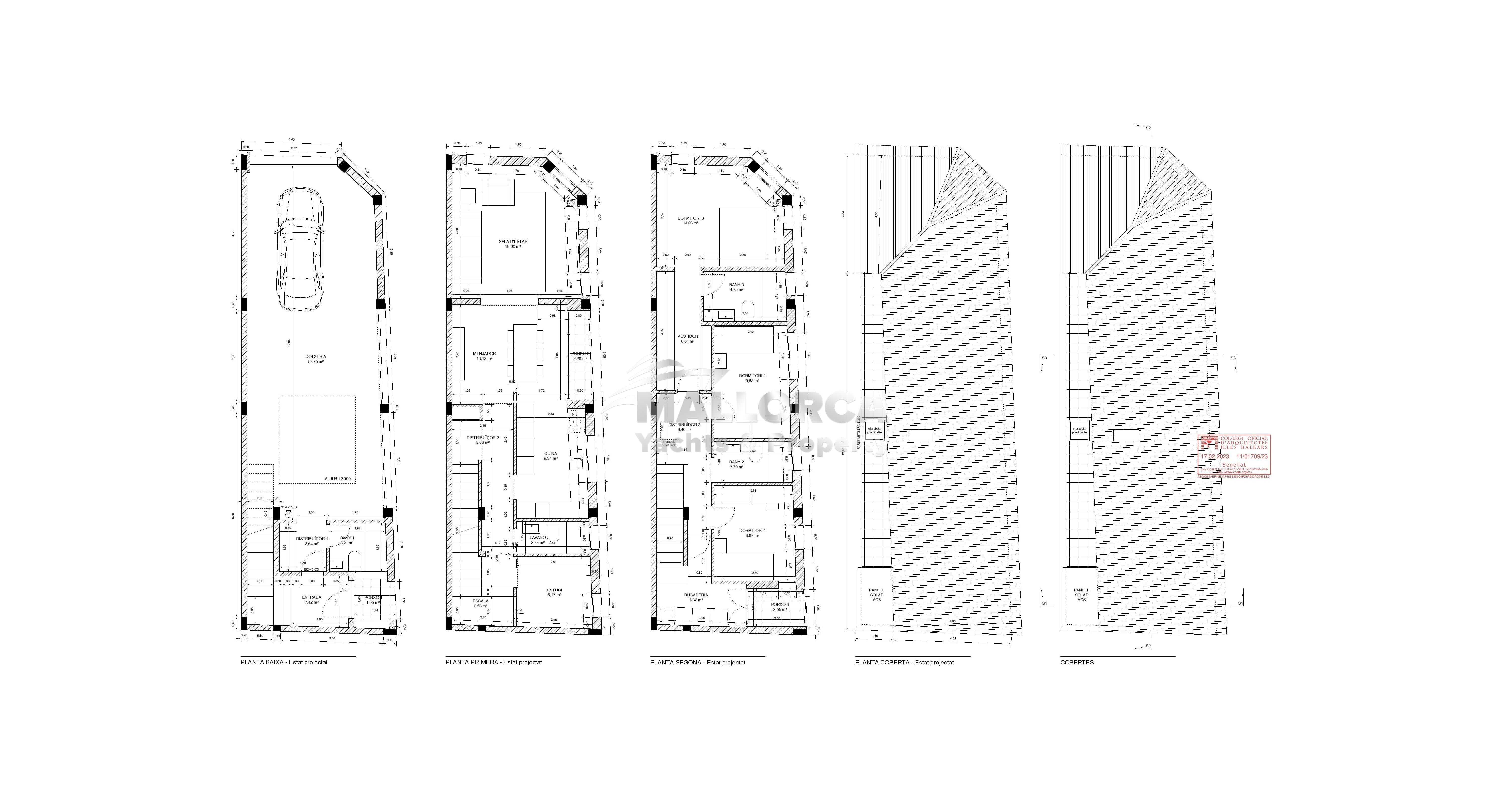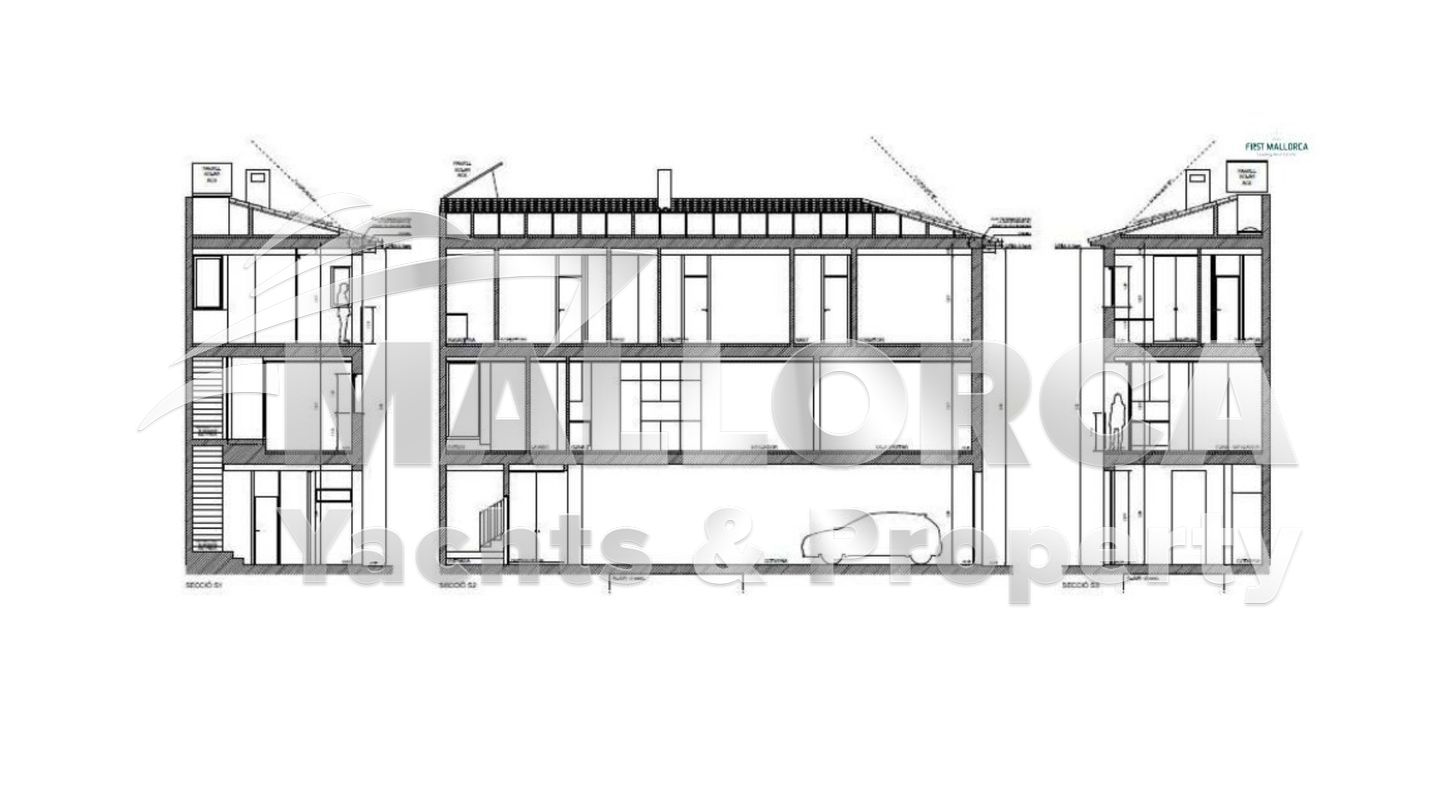 The ground floor includes the garage, then the living room and kitchen are on the first floor. Three bedrooms and two bathrooms on the second floor. Its located on a corner of a very quiet street with very little traffic. From the living-dining room and the main bedroom there are views of the Tramuntana mountains and the Sant Jordi stream.