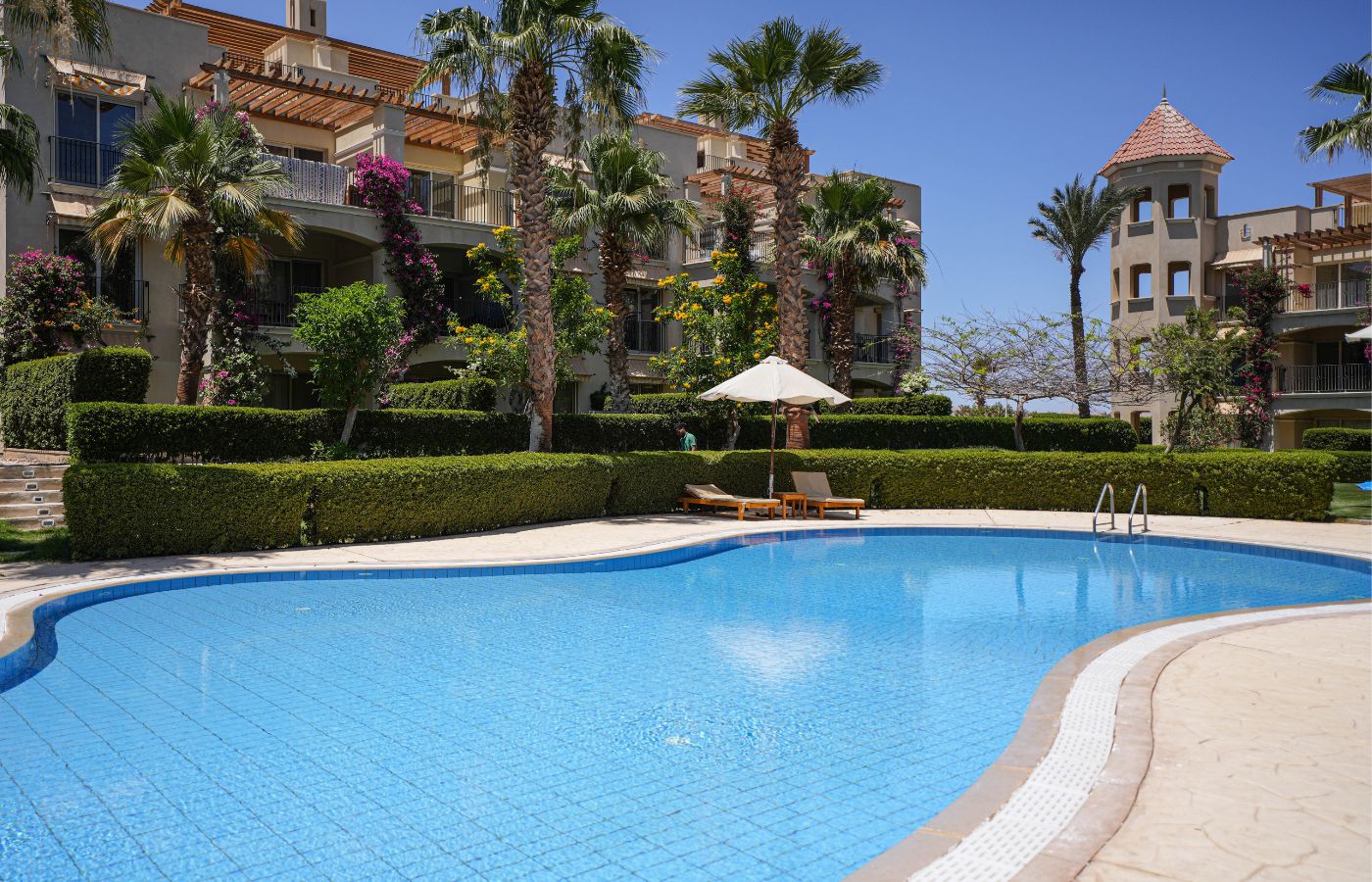 A spacious 89 mΒ² 1-bedroom apartment located on the ground floor with a peaceful pool view, in the upscale Veranda compound in Sahl Hasheesh.