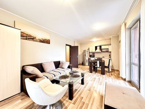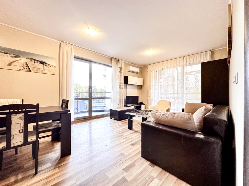 We offer a spacious two-bedroom apartment in Cacao Residence, located in the southern part of Sunny Beach, just 300 meters from Cacao Beach.