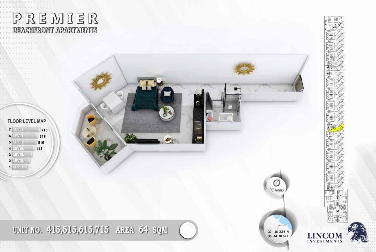 This sleek 64 m² studio offers a smart, open-plan layout with panoramic Red Sea views. Located on the 4th floor of Premier Beach Residence in El Helal, this fully finished apartment is ideal for holiday use, investment, or permanent residence in one of Hurghada’s most sought-after beachfront locations.