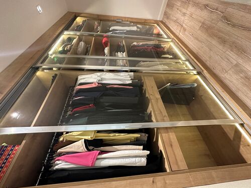 • 🚪 Walk-in wardrobe with sliding glass doors