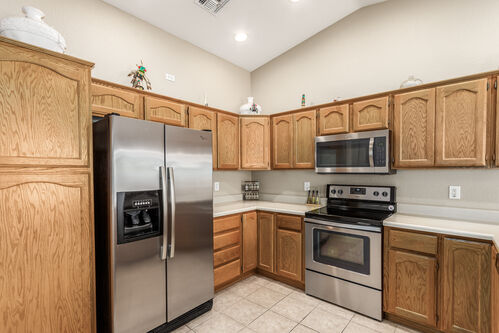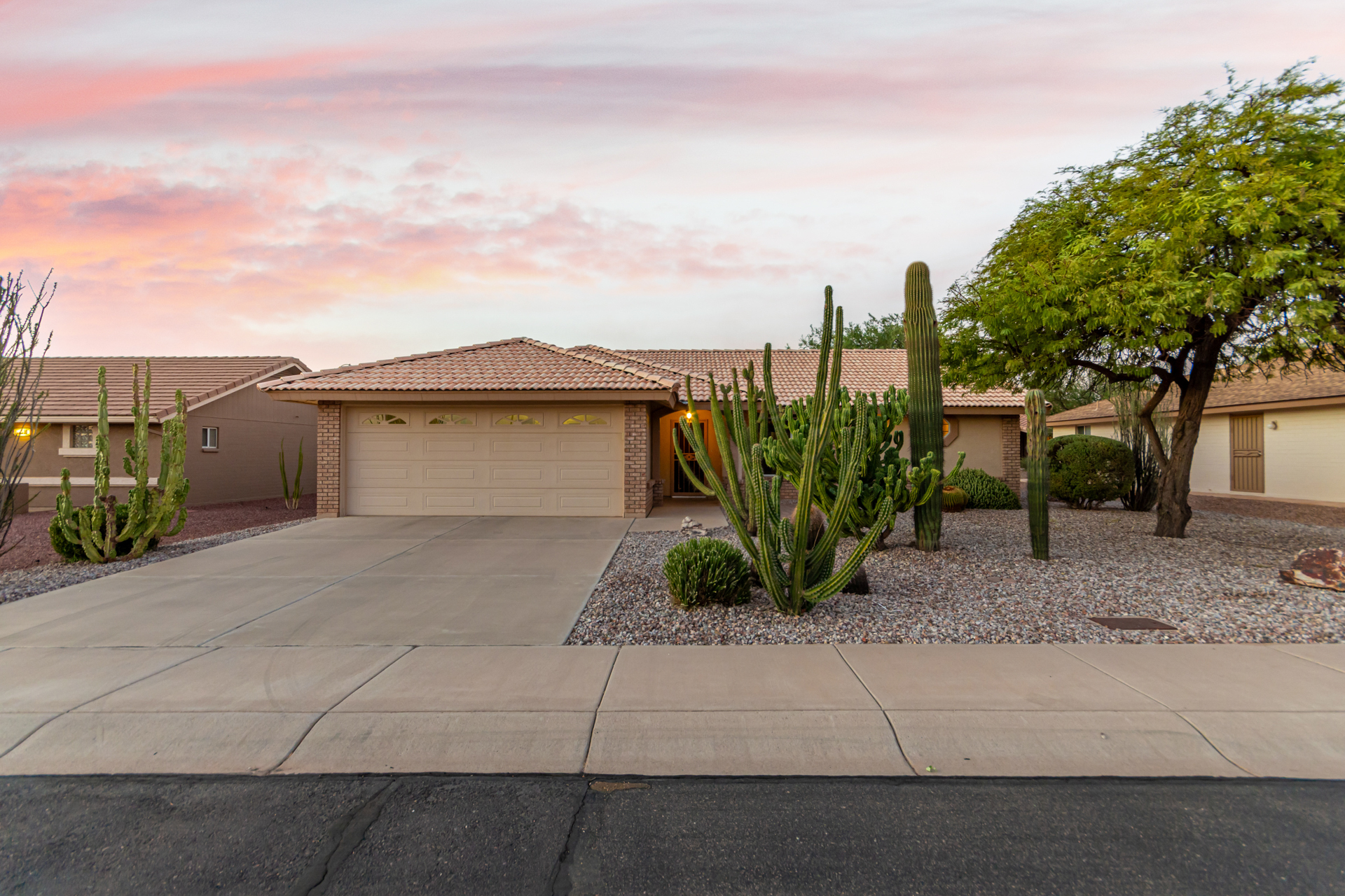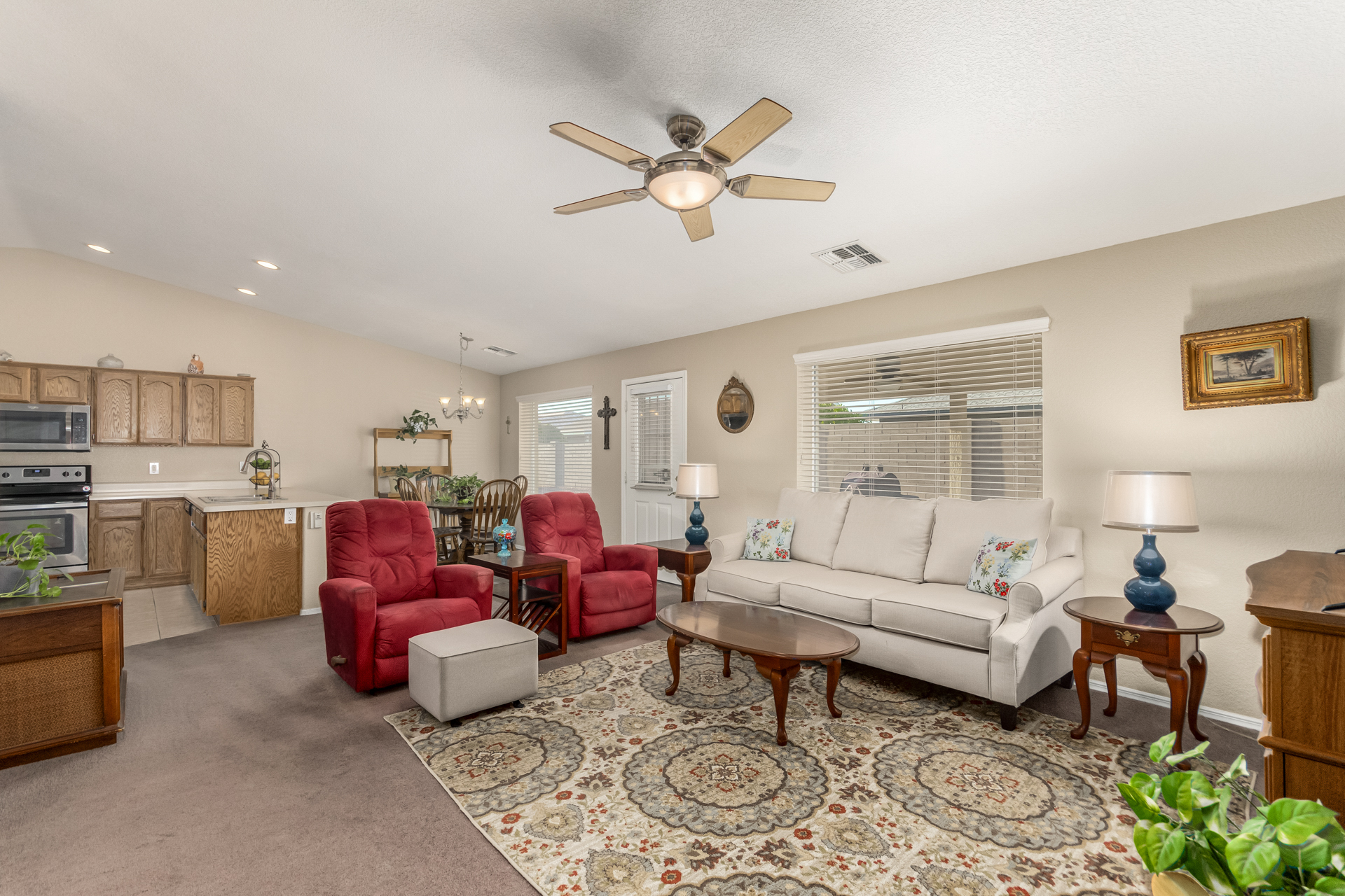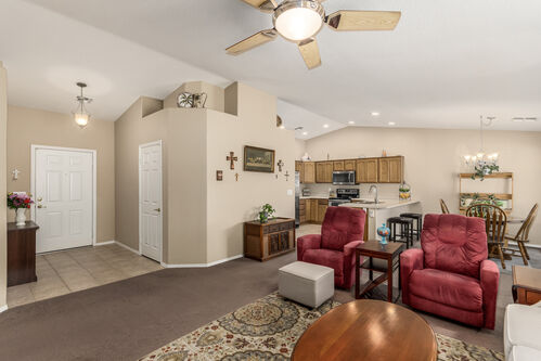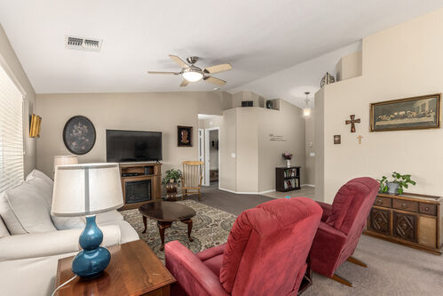 Brand new AC on this 2 bed/2 bath home in the vibrant community of Sunland Springs Village! This well-maintained home offers a whole-house filtration system, a spacious two-car garage, two walk-in closets in the primary room and stainless steel appliances. This low maintenance home also has security screen doors and is located in an active 55+ community with loads of amenities that include but are not limited to: golf course, pools, two fitness centers, pickle-ball courts, tennis courts, bocce ball, basketball court, dog park, billiards, a library and tons of clubs!
