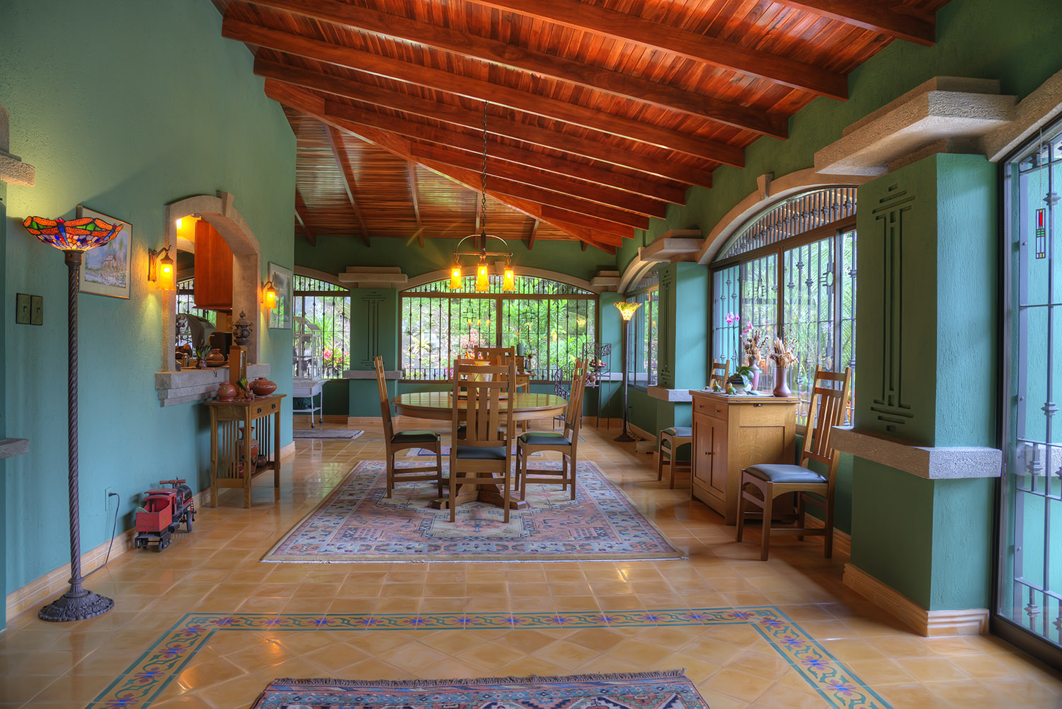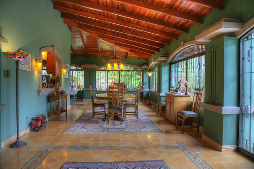 Three large 99.9% pure water natural springs. Completely private and quiet, yet 30 minutes from Walmart, two hospitals, public and private schools, as well as universities, and a large US style shopping mall, just 2 miles from Hotel Río Perlas Resort & Spa with hot springs. Master suite with walk-in closet & heated towel rack. Guest bedroom & bath (sleep six with porch area) with hand carved doors. Custom made cabinets throughout. Kitchen Aid appliances & granite counter tops, Kohler plumbing fixtures & Restoration Hardware fixtures in bathrooms. Hand made mosaicos title & stained glass doors & windows. 60” TV high definition with surround sound. Plenty of room to expand or start business. Will help with any other construction project you would want to do.