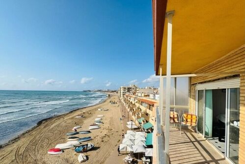 This beachfront apartment in La Mata is a great opportunity, especially if you like to add your personal touch. It's a fourth-floor apartment with no elevator, with incredible views of the sea and the beach—a real gem! It has two bedrooms and a bathroom, and the kitchen is separate. The living-dining room is spacious and bright, ideal for relaxing and enjoying the surroundings. Measuring approximately 57 square meters and facing east, it receives morning sun, creating a very pleasant atmosphere. It also has communal parking for your convenience. Keep in mind that it's in need of renovation, so you can design it to your liking and make this apartment a unique place. A perfect opportunity to create your home in a privileged location!