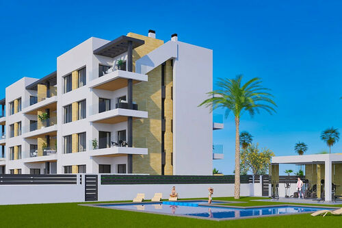 Gomera Star is a new project of modern two bedroom apartments with spacious terraces and excellent location near the sea in the vibrant area of Aguas Nuevas, Torrevieja.