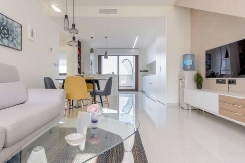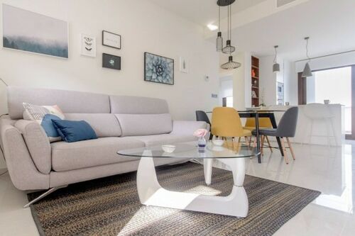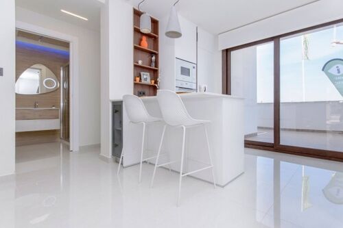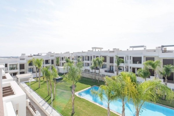 A new development that sits on the slope of a hill with magnificent pink salt lake views of the Torrevieja area.This fabulous development consists of 104 maisonettes with two and three bedrooms and two bathrooms. All top floor maisonettes provide panoramic views from the large solarium to the salt lake and ground floors maisonettes have large terraces overlooking the green area. Optional underground parking and storage spaces are available.These properties share beautiful green areas and two large swimming pools. This residential offers a modern design, with selected materials and maisonettes finished to very highest specification using only top quality materials.2 bedrooms ,2 bathrooms,built area 63 m2,terrace 37 m2.