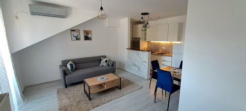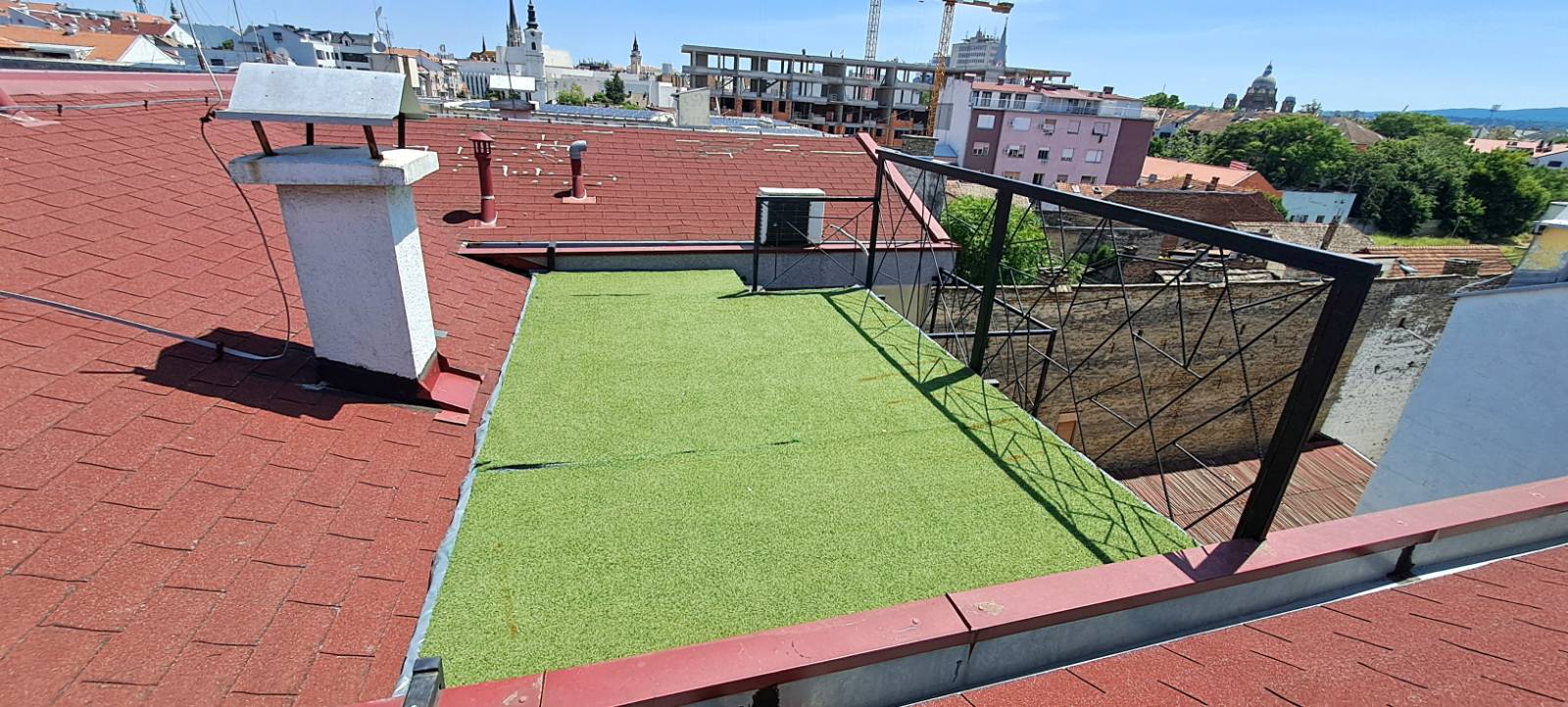 I am advertising the sale of an apartment in an attractive location, just a 2-minute walk from the pedestrian zone in the city center. The structure of the apartment is two-and-a-half-bedroom, it was originally two-bedroom, so it can be returned to its original state with minor modifications. It consists of one larger bedroom, one smaller bedroom that can be used as a study, an entrance hall, a bathroom and a comfortable living room with a kitchen. The living room and bedroom are equipped with air conditioners. From the living room there is access to the terrace, which is approximately 7m2 and does not fit into the square footage of the apartment. The biggest advantage of this apartment is an additional terrace in the form of a platform that offers a 360-degree view, from which you can see the Serbian National Theater, the Cathedral, the Synagogue, Fruška Gora... The apartment is sold furnished. An excellent opportunity for living or as an investment for rent on the basis of an apartment per day. For any additional information, write or call +381644492168.