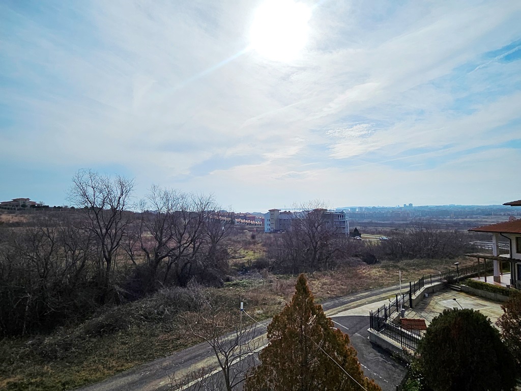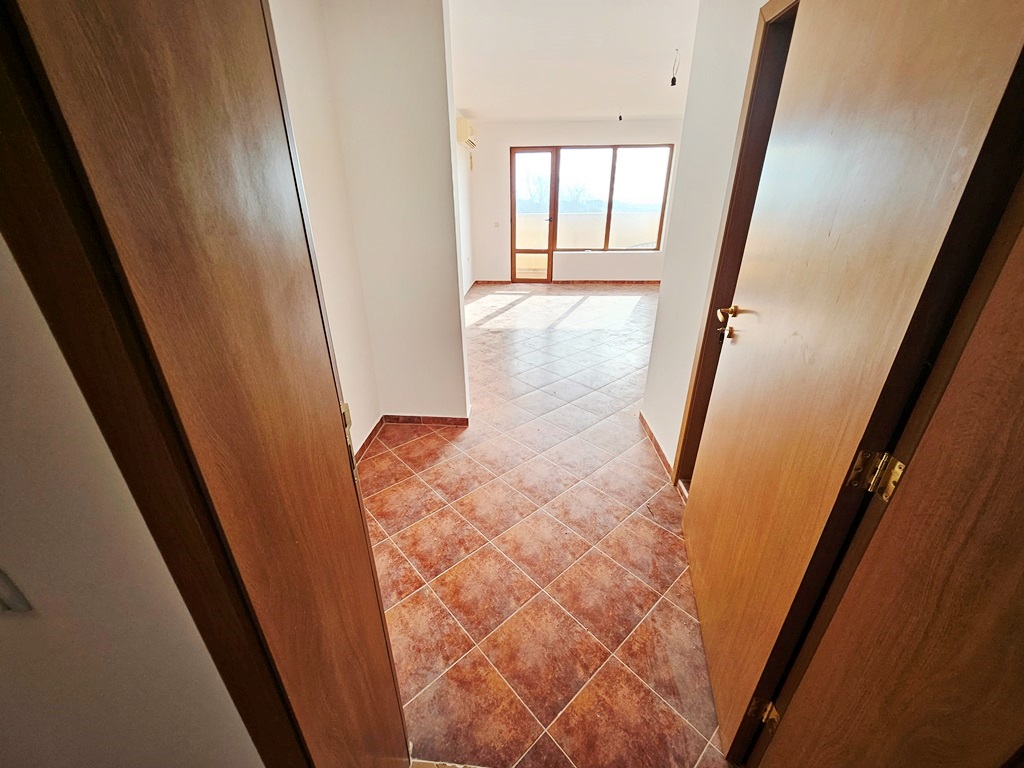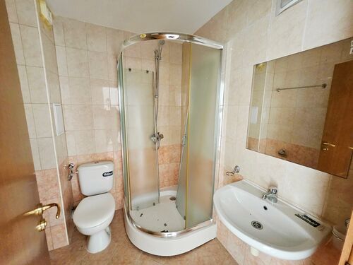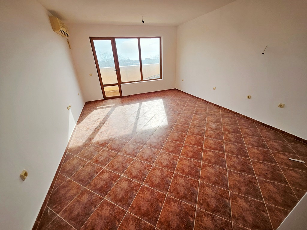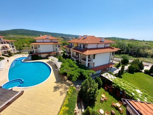 We offer for sale a beautiful, spacious studio with sea and mountain views. The complex is located 2 km from Sunny Beach and offers an outdoor pool, a poolside bar, a restaurant, security and video surveillance. It is located at the foot of the Stara Planina Mountains, on the road to the village of Kosharitsa. The place is very quiet, beautiful and combines the charms of the mountain and sea climate. The complex has a large landscaped garden, many cool corners for relaxation, a large pool, a playground, parking for owners and guests. The complex is a favorite place for families with children to relax, due to the safe territory and the clean, healthy climate. There is a supermarket in the neighboring building. There is a bus stop right next to the complex. The apartment we offer is on the third floor, with a beautiful view of the mountain and the sea. It consists of an entrance hall, a spacious room, a bathroom with toilet and a nice terrace with sea and mountain views. The built-up area is 37 sq m. Maintenance fee - 600 Euro per year.