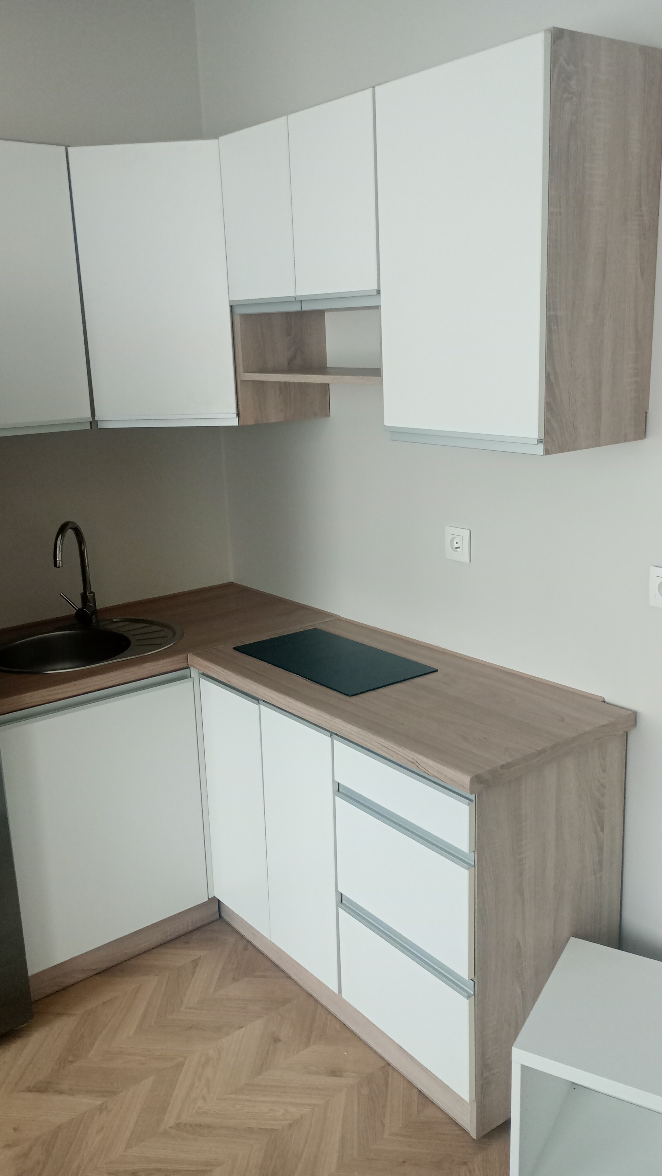 Equipped with: induction hob, washing machine, fridge