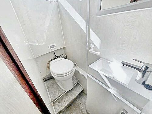 Forward Cabin: Accessed by steps from the main saloon, this area includes a V-berth, additional storage, and a macerator toilet compartment.