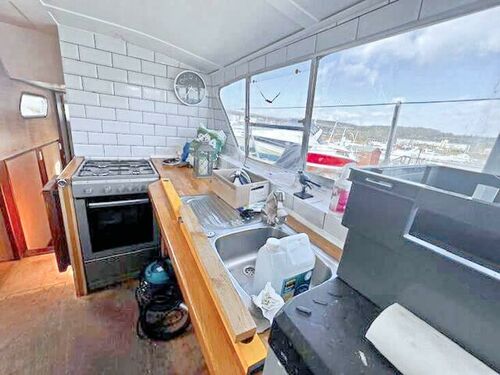 Externally, she offers usable deck space, ideal for relaxing or enjoying marina life. Some cosmetic tidying and paintwork would enhance her appearance further.