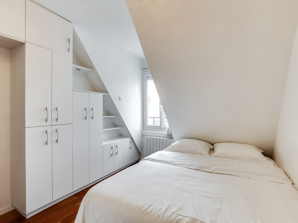 This charming apartment is located in the beautiful 7th arrondissement on the 6th floor of a secure, coded, residential apartment building without an elevator. Upon entering the apartment, you are greeted by the spacious living, kitchen and dining area. In the living area, you will find a comfortable sofa, which can be converted into a bed to accommodate an extra guest. Additional linens are provided for this bed. There is also a flat screen television with cable for your enjoyment. The flat as a unique view of the Eiffel Tower and rooftops of Paris.