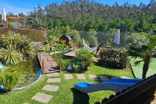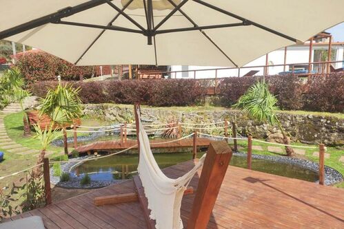 “Casa do Fulão”, a rustic house with 3 suites, completely renovated and expanded, ground floor and 1st floor, with an equipped kitchen, air conditioning, annex with a recreation room, terrace, veranda, garden with a litlle lagoon, sauna and various outdoor leisure spaces, swimming pool, jacuzzi, barbecue area with pergola, parking space, and irrigation well. (Ref: 2979)