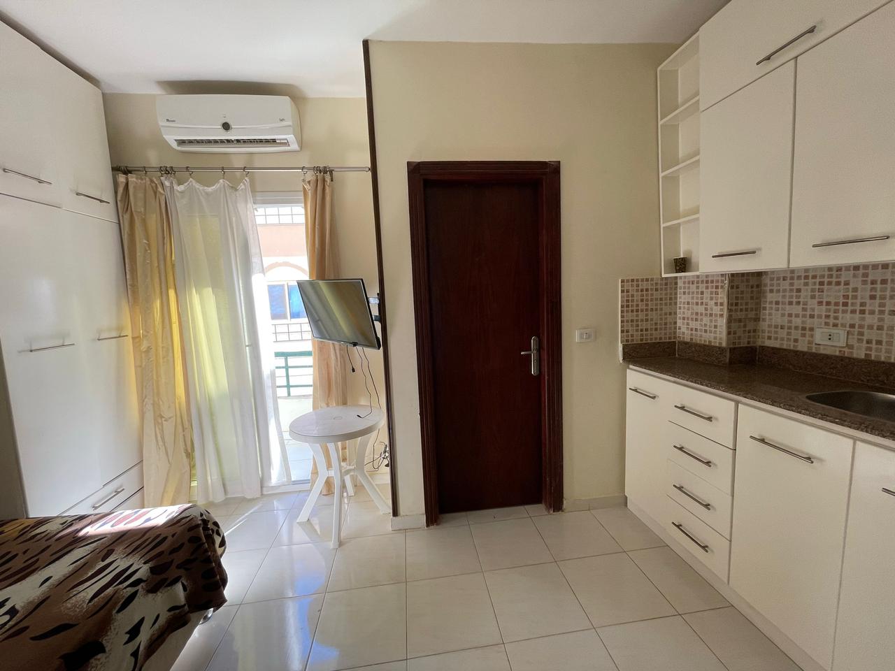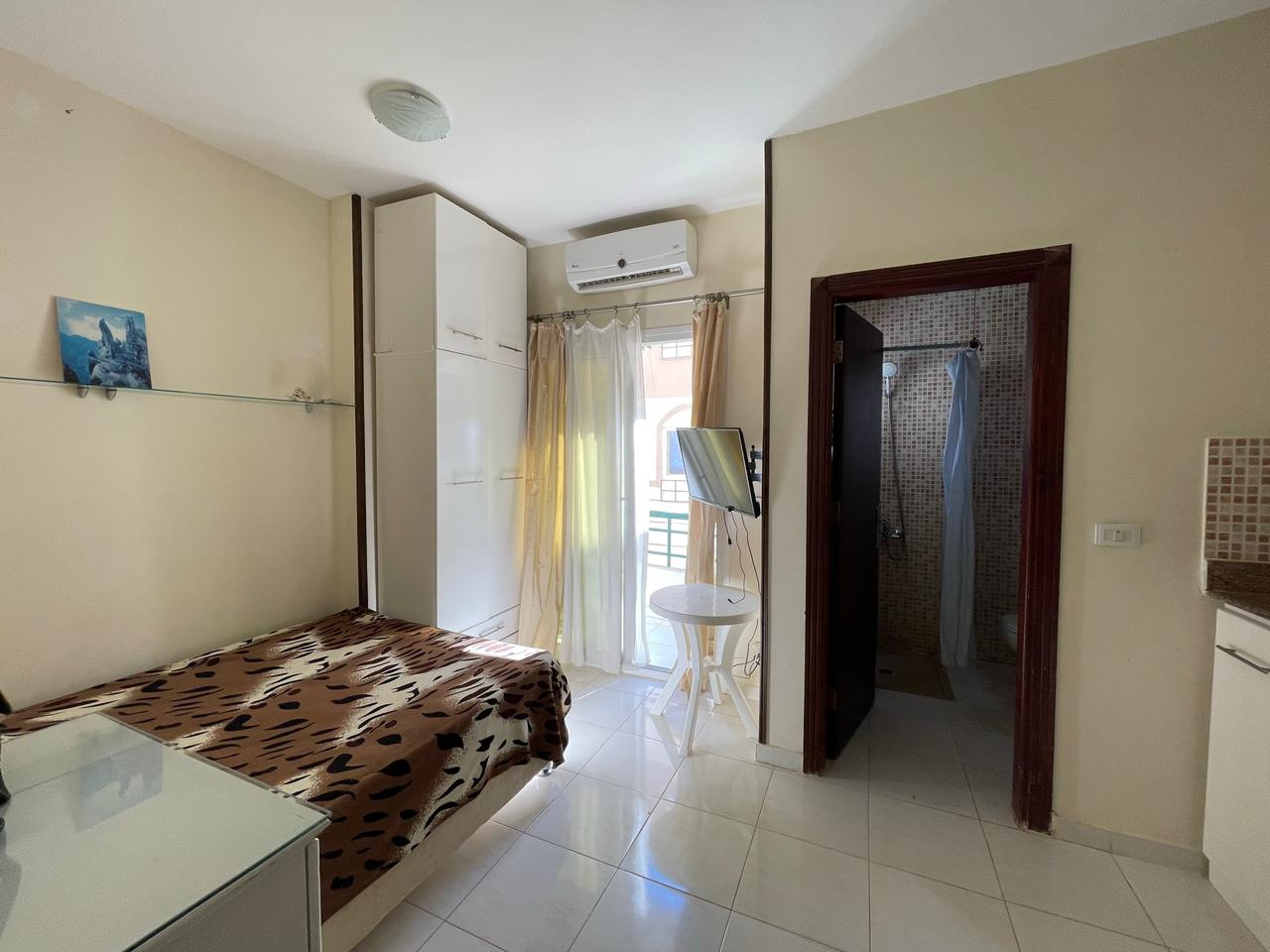 Studio for sale in El Ahea area. Residential building with swimming pool and common roof terrace. 3rd floor with balcony. The total footage is 26 m2. There are all furniture and household appliances. There are many shops and cafes nearby. Big supermarket. To the sea 10 minutes walk. convenient transport links