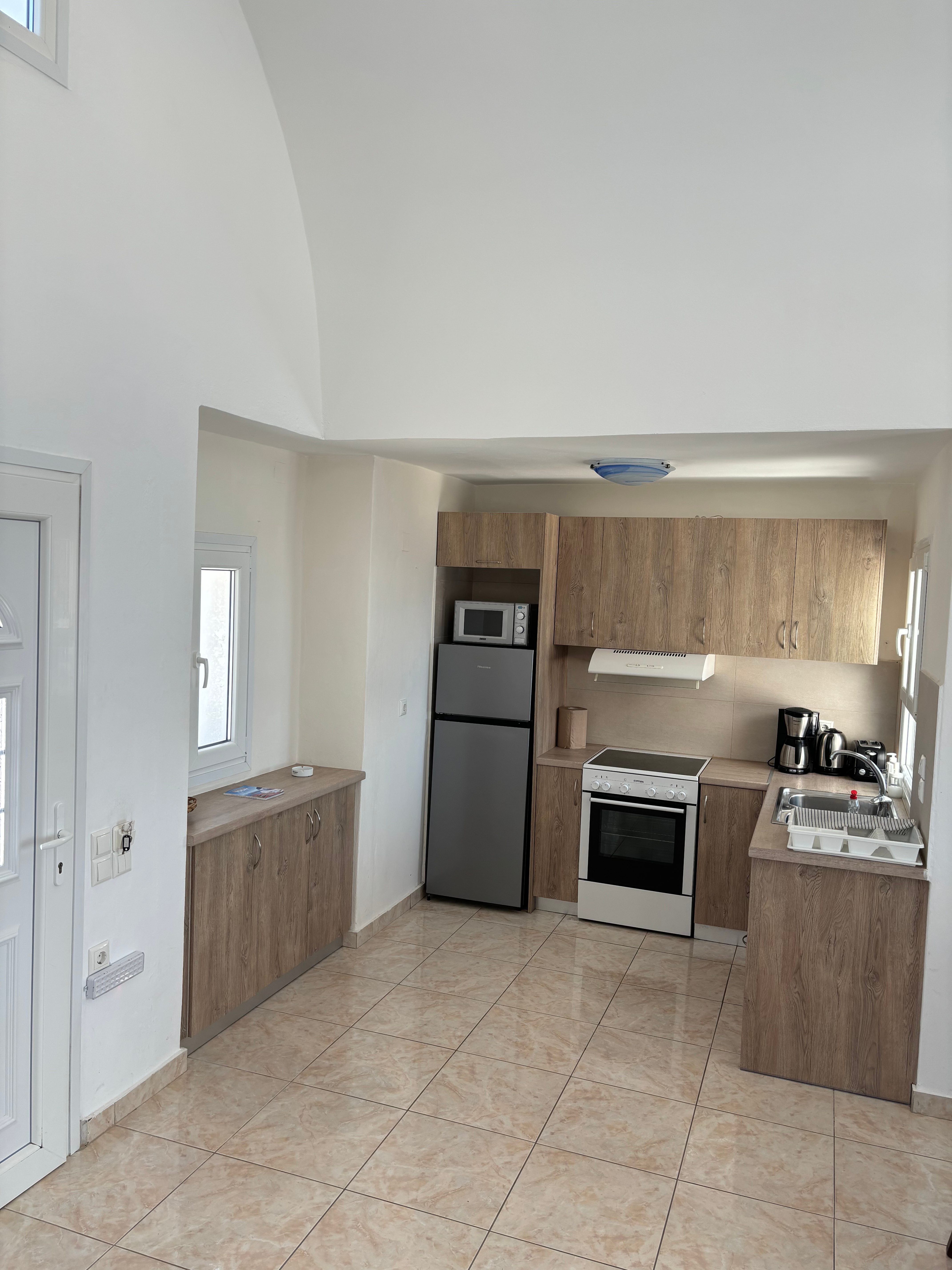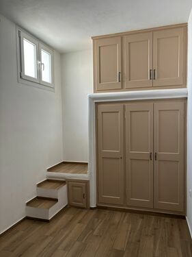 This unique villa is only 1800m away from the center of IA , in a beautiful surrounding without fuss and provides its owners with unlimited sunrise and sunset views ,facing the volcano and Ios island.