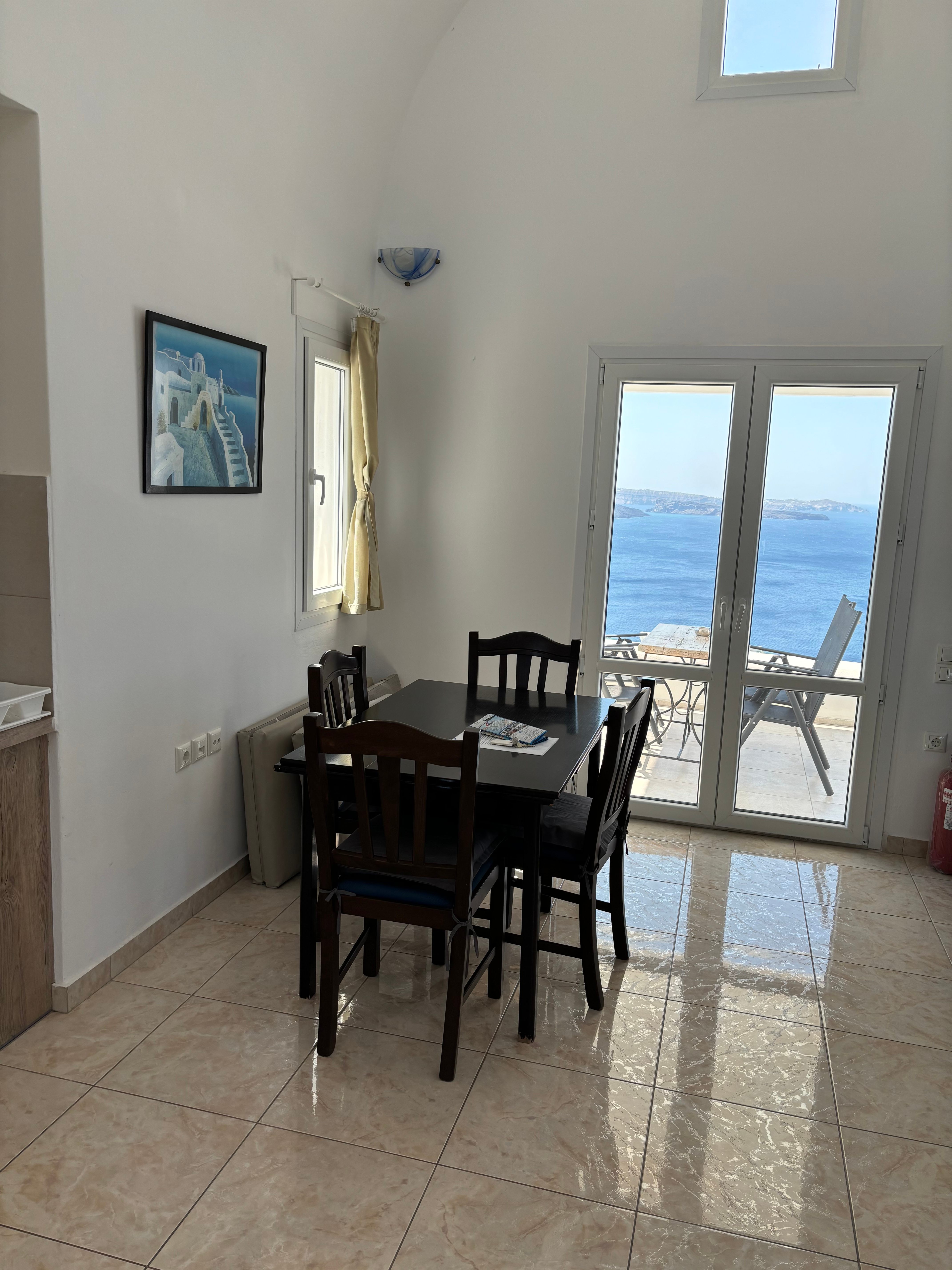 Experience waking up in Santorini and starting your day with breakfast on your balcony ,overlooking the volcano and the caldera,under Greece's warm sun , followed by a dive into the pool while listening to favorite music or nature sounds.Then put your shoes on and take a short walk to the village for some fruits or drinks. Watch from your private balcony the mesmerizing sunset and breathe in the fresh Aegean breeze while enjoying some of the best local wines.End your day at the pool with a night swim under the stars .