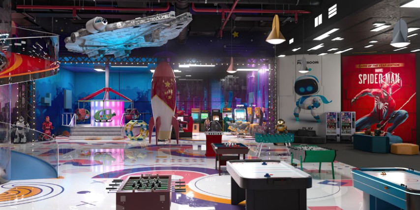 Children’s entertainment zone, cinema, and bowling area