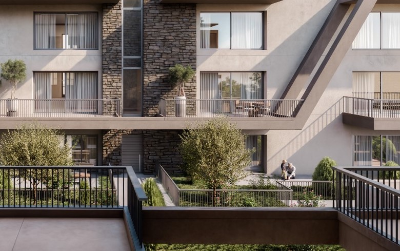 As residents enter the inner courtyard, the route to their home unfolds through areas of tall and low planting. The stone and earthy tones of the architectural elements blend harmoniously with the surrounding area and enhance the sense of tranquility. Every element contributes to a unified concept of the “courtyard” and quality living.