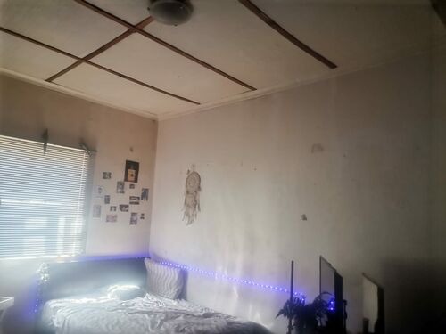 2Bedrooms, Lounge, Kitchen, Bathroom. Small storeroom at the bottom of the house, Enclosed back yard. Undercover front stoep. On Street parking ONLY but you can change this if you rectify the front wall and then you will have off street parking for 1 car. Slight TLC required but at this price it is a bargain not to miss.