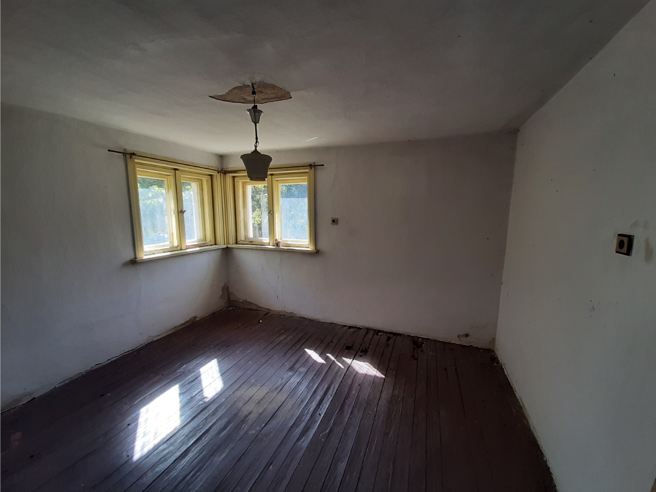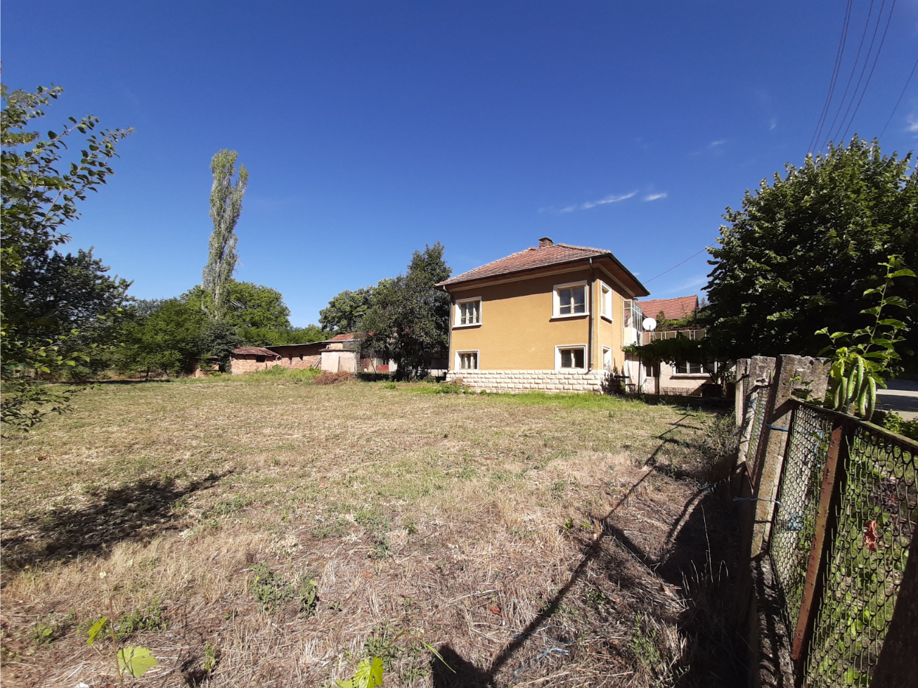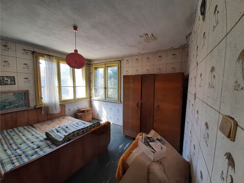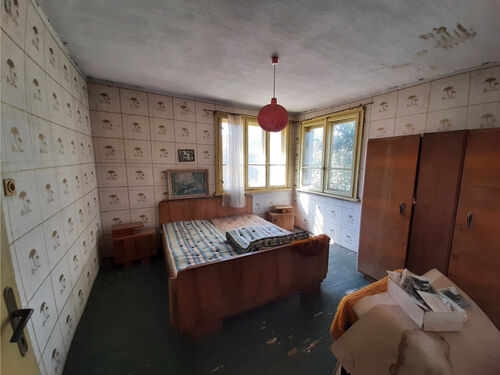 Solid country house with garage, barn and land situated in a quiet village near river 35 km away from Vratsa, Bulgaria. The property is located on a quiet side street about 3-4 minutes away by foot from the center. The house has two floors connected through solid internal staircase which also goes to the attic level. The ground floor consists of corridor and three rooms which used to be kitchen, living room and dining room. The second level has corridor, three bedrooms and spacious terrace. The attic area is big and can be rearranged in order to provide additional living or storage space. Next to the house is the annex which holds two premises – big living room with kitchenette and an old shower room. At the back of the house one can find garage and an old barn. The property is very solid and in good general condition but still requires some renovations and repairs. It is located in close proximity to the local library and school although the latter is not functioning anymore. The village where the property is situated is not very populated but it has a shop, post office and mayor`s office. The surrounding area comprises of hills, fields and small river which passes about 3 km away. The area around the river is nice and suitable for camping. There is a train stop in about 5 km distance from the house. The nearest town is about 12 km from here. It is the seat of the local council and there one can find administrative services, police station, fire station, emergency room, library, many shops and stores, pharmacy, dentist, gas stations, etc. Solid rural house with many outbuildings and good potential at a fair price.