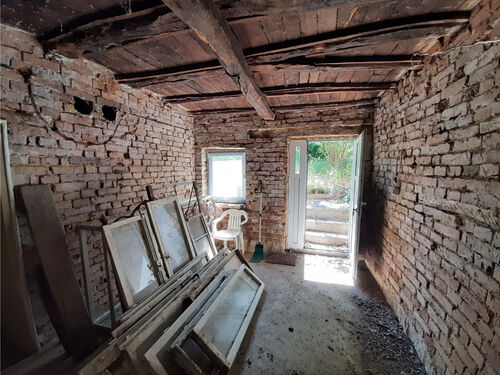 Solid rural house with plot of land in close proximity to forest and hills situated in the outskirts of a village 45 km away from Vratsa, Bulgaria. The property is located in a quiet area bordering the forest. It consists of main building with two floors, old barn and plot of land. The ground floor holds three premises which are designated to become bathroom with toilet, kitchen and living room. There is also a common area which connects all three premises and can be turned into sitting area/lounge. Over the short external staircase one can go to the second floor which has identical layout as downstairs. Here you enter into a very short hallway which brings you to spacious sitting area and from there one can enter into three bedrooms. The house needs some finishing work and renovations but a bit of work had already been done. All windows are new PVC, double-glazed, the roof was repaired several years ago and a bit of interior refurbishing was done on the second floor while downstairs the floors have been leveled and the walls are stripped off of the old plastering and are ready for the new owners to choose the materials and style in order to do the finishing work. A bit of plumbing is also in place as there is water into the premises designated for bathroom and kitchen. A new cesspit had also been built and the house is connected to it. The barn located to the back of the house needs work but the new owners can decide whether to save it or remove it and build something else in its place. The property is situated in a quiet village in proximity to small lake, hills, forest and fields. There are shop, café-bar, post office, mayor`s office and library here. There are two towns within 15-20 minutes of driving from the house. One of the towns is where is the seat of the local council responsible for the administration and rule of the area so that place provides administrative services, hospital, police station, fire station, pharmacies, banks and ATMs, school and kindergarten, cinema, furniture store, grocery stores, supermarkets, farmers`s market, gas stations, etc. The property is located about 40 minutes away from the regional center Vratsa and about two hours away from Sofia and Sofia International Airport. Solid rural house with nice location and lots of potential at a fair price.