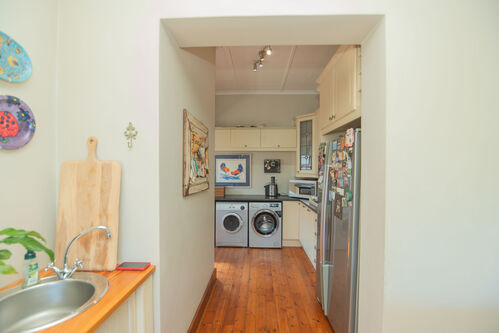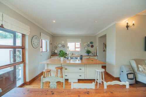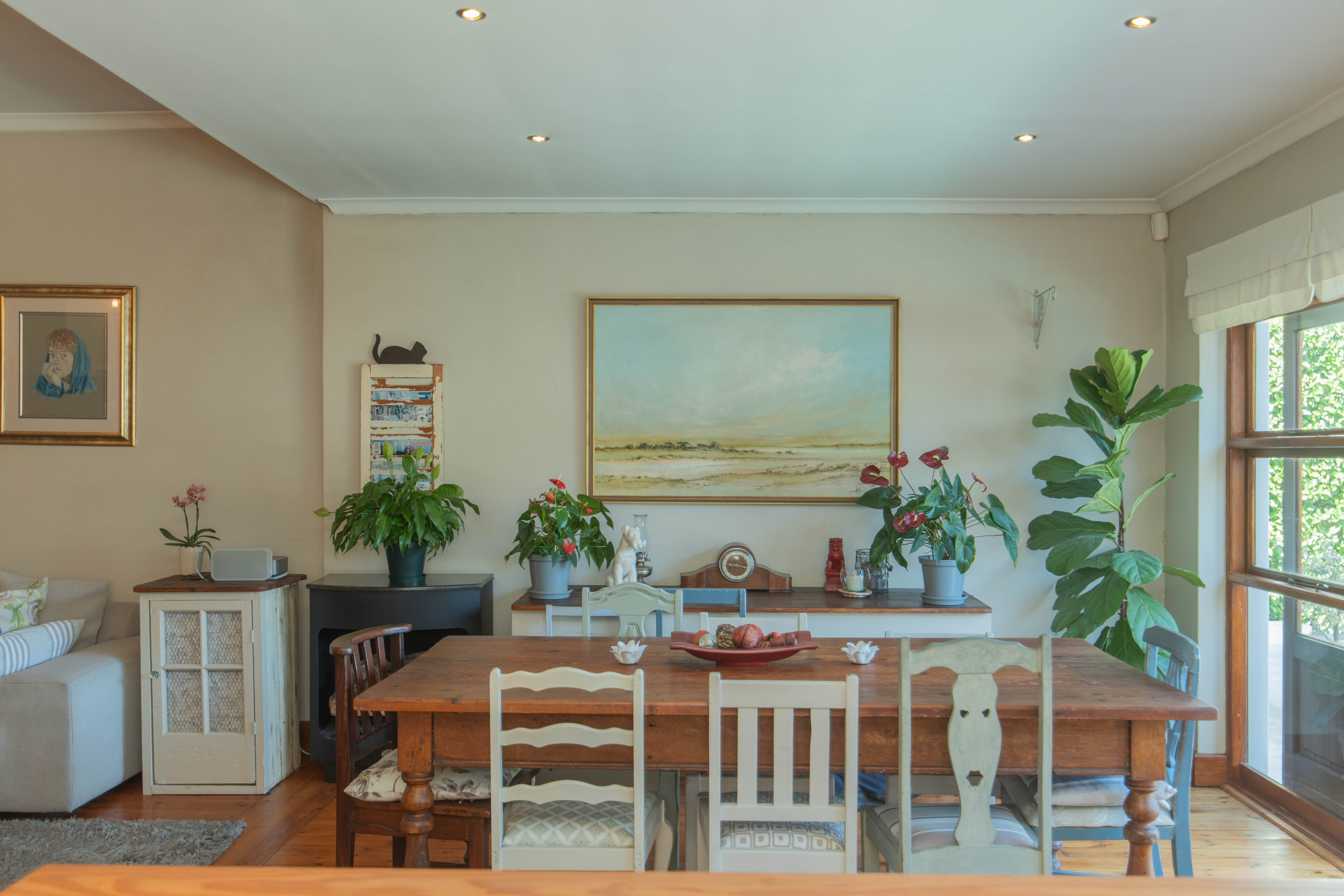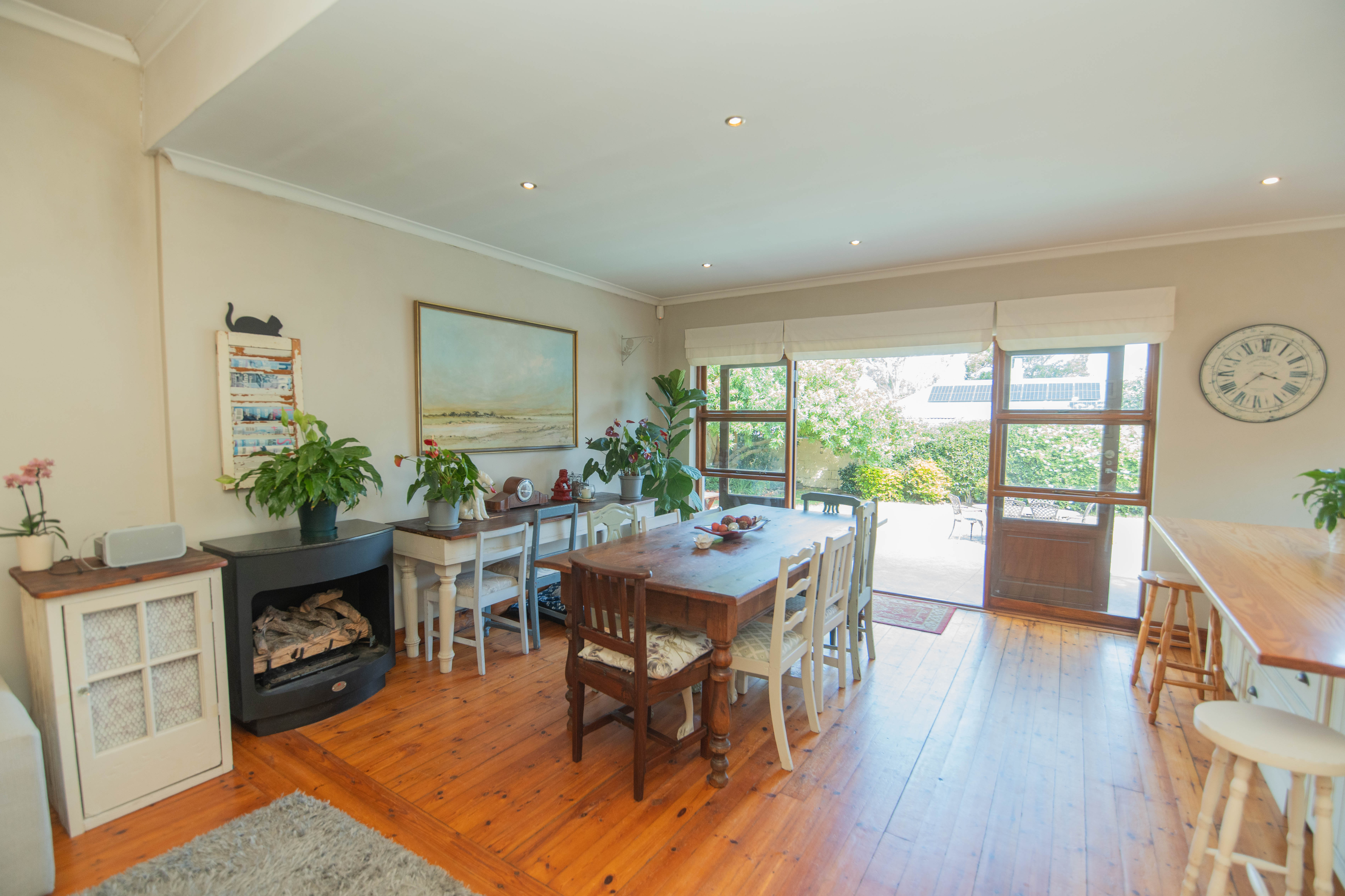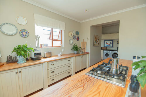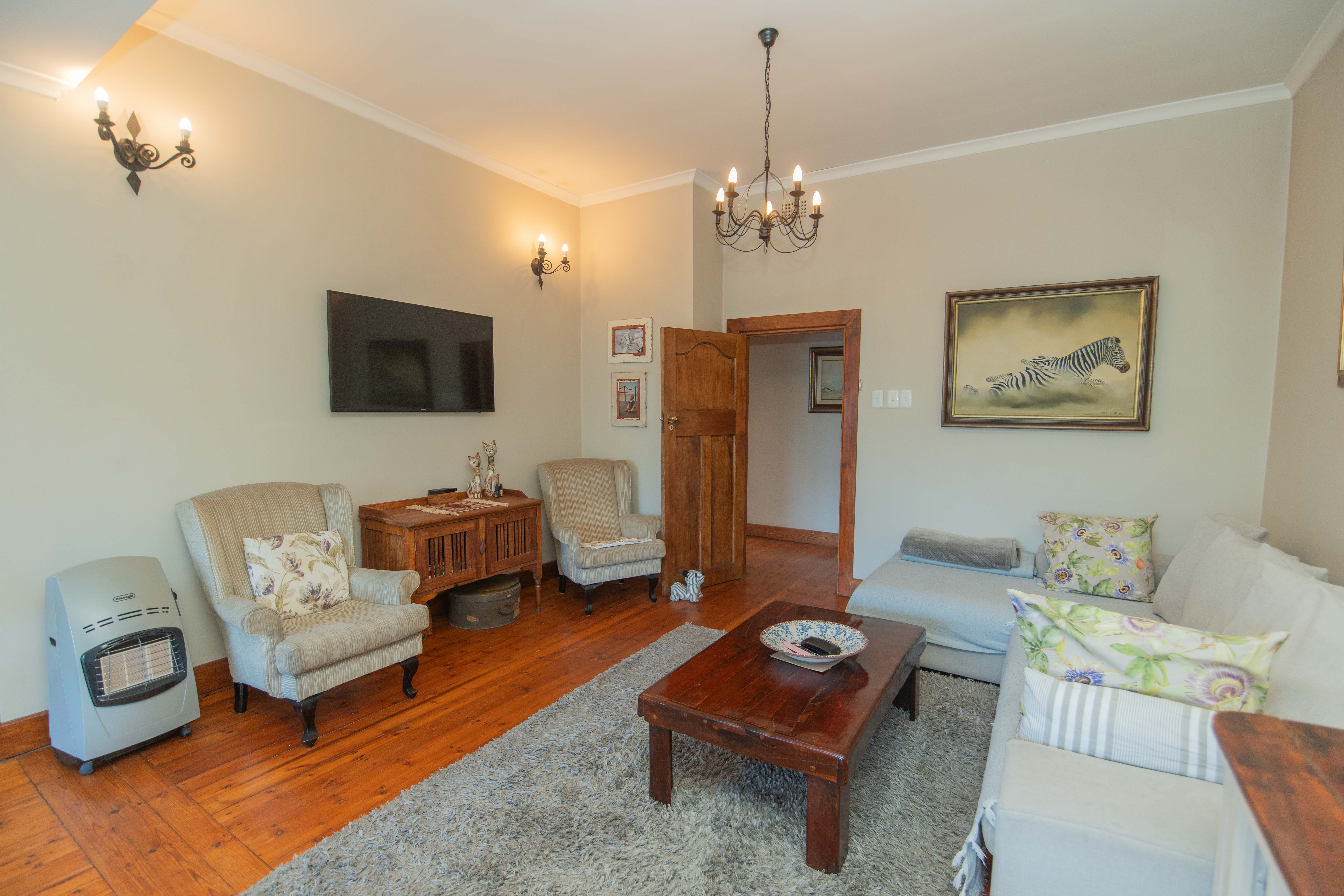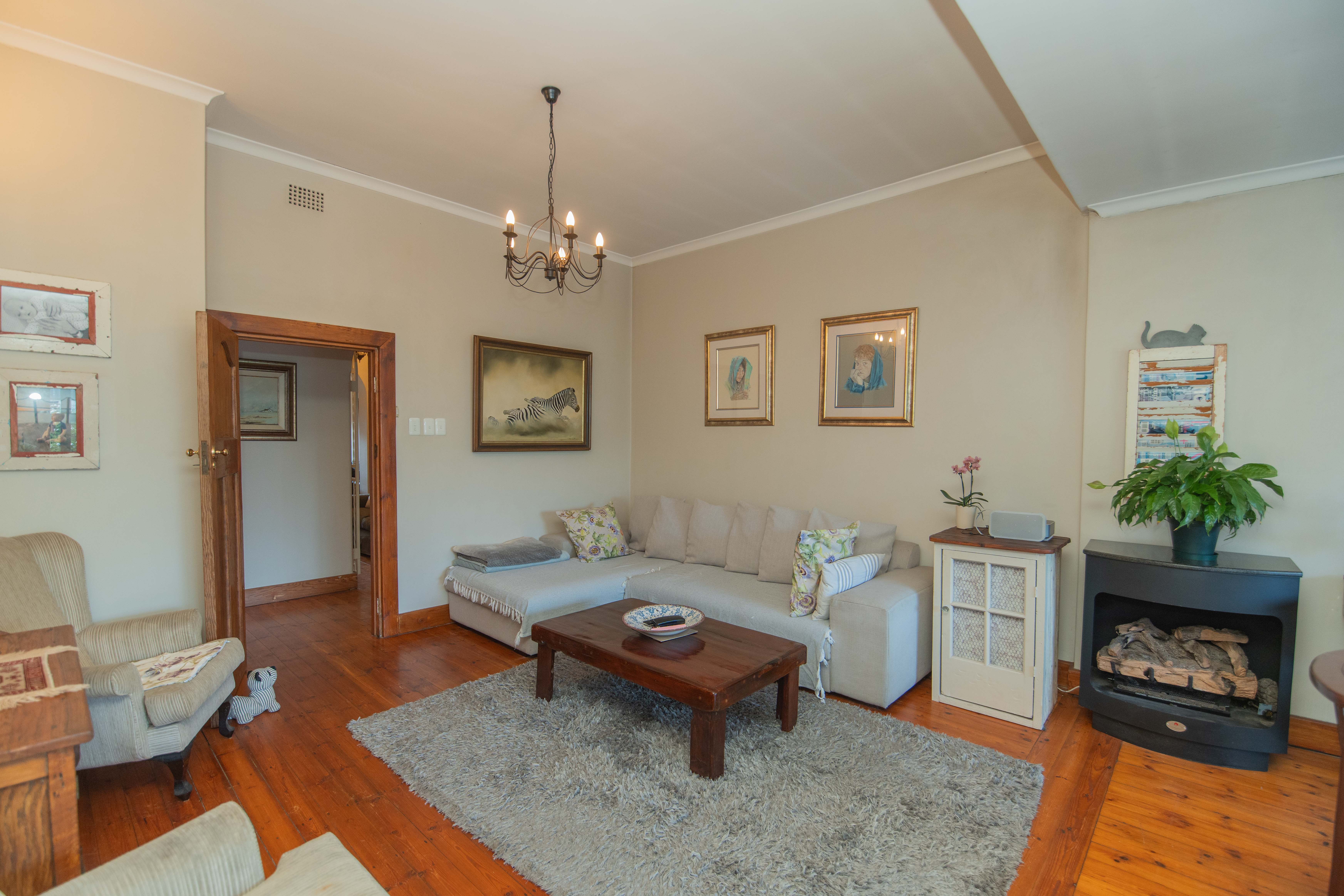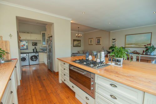 Quality Country classic kitchen: DeLonghi Gas stove, Meranti cupboards and Oregon pine countertops. Open plan to the cozy lounge and dining area with gas fireplace (Home Fires). Wooden doors opens to the "patio" and garden. Separate scullery and laundry.
