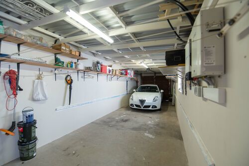- Tandem garage (14m length × 4m width) with remote operated doors.