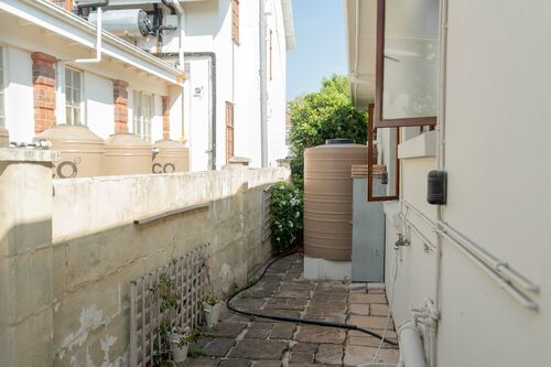- Three water tanks (1×5,000L + 2×2,500L) with filtration, gravity fed, plumbed into the house.