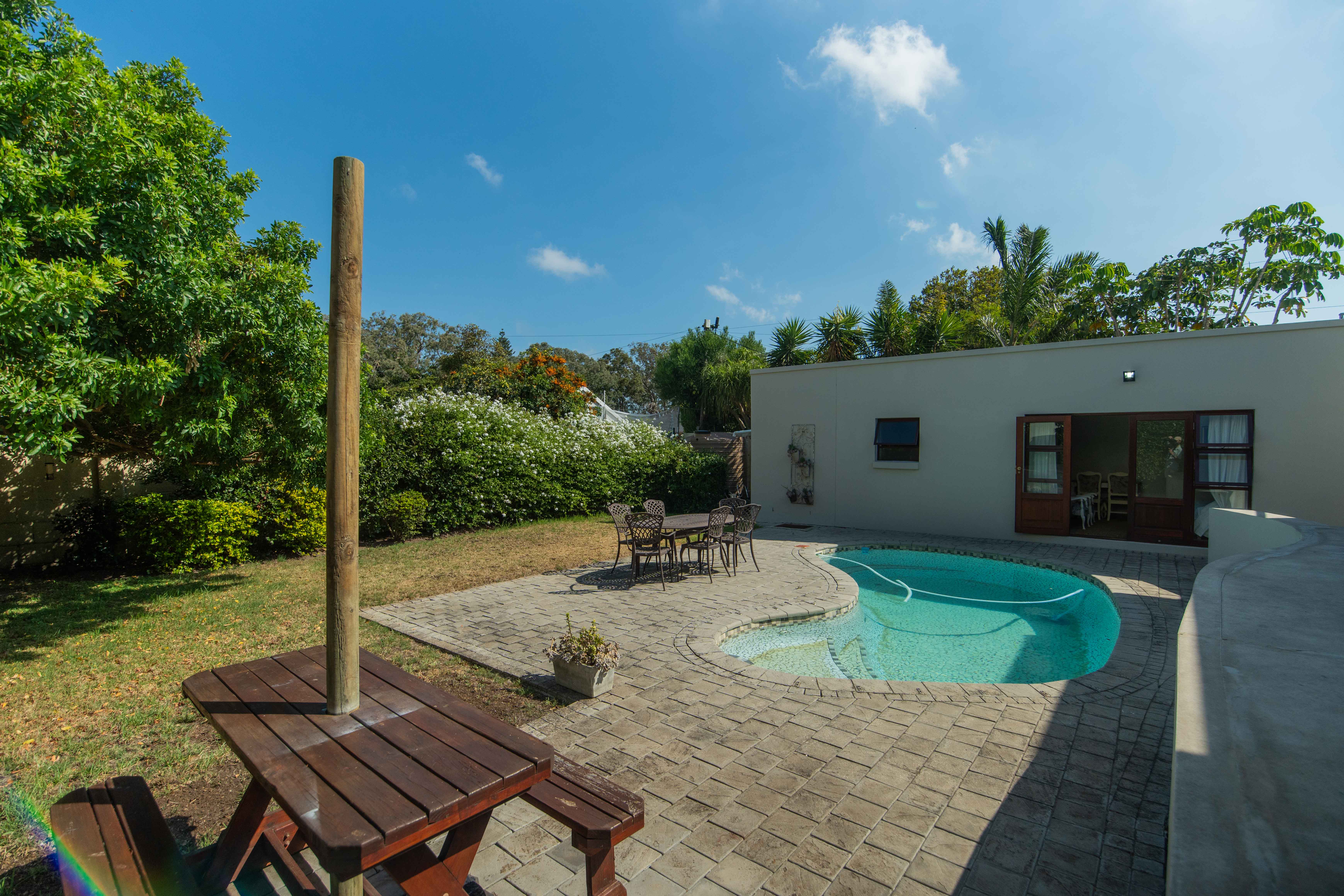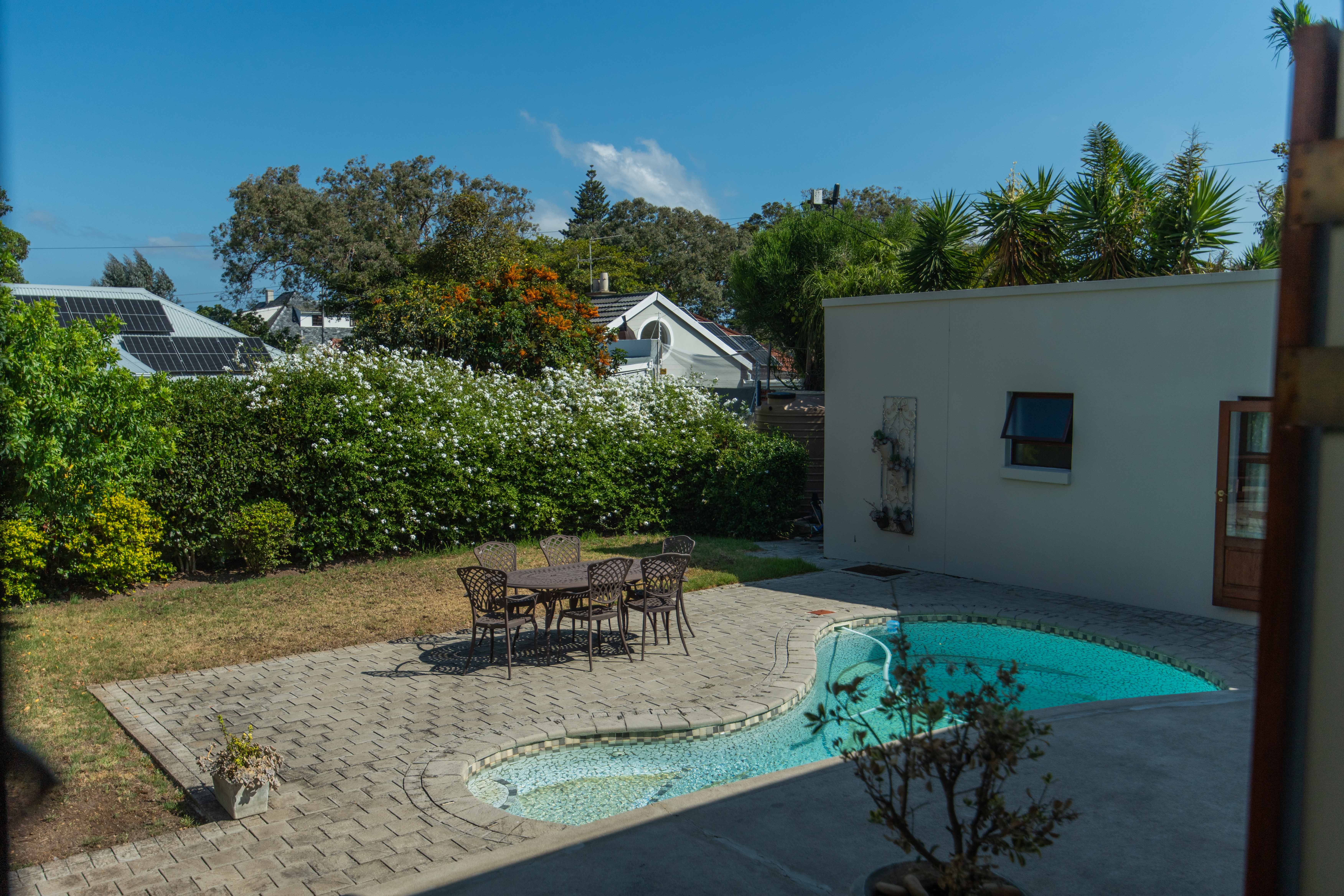 - Exterior access: wooden doors lead from the kitchen/dining area to a garden and splash pool; side garden access from the 2nd lounge and Master bedroom.