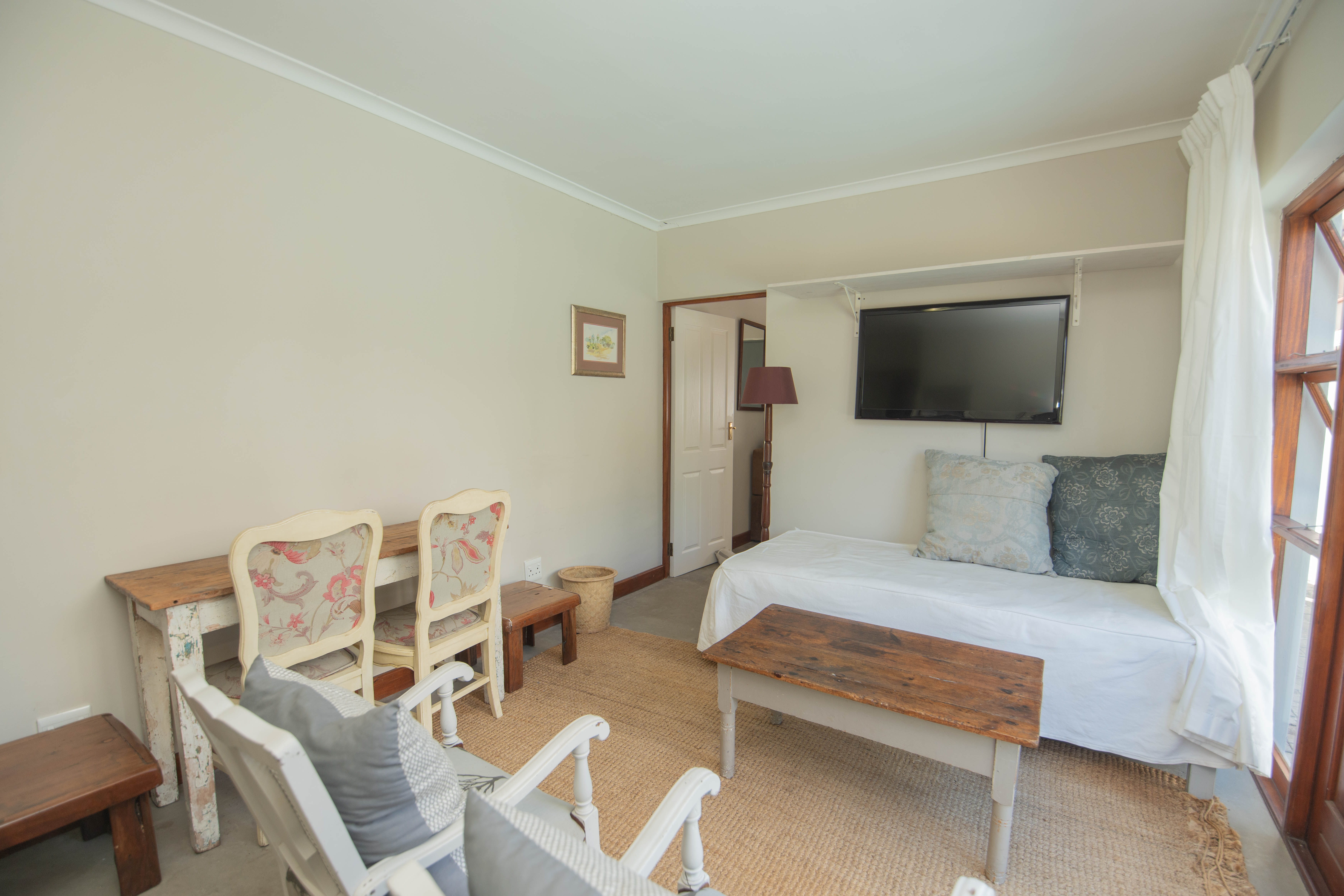 - Separate one bedroom cottage with full modern bathroom, kitchenette and small lounge area. Modern screeded flooring.