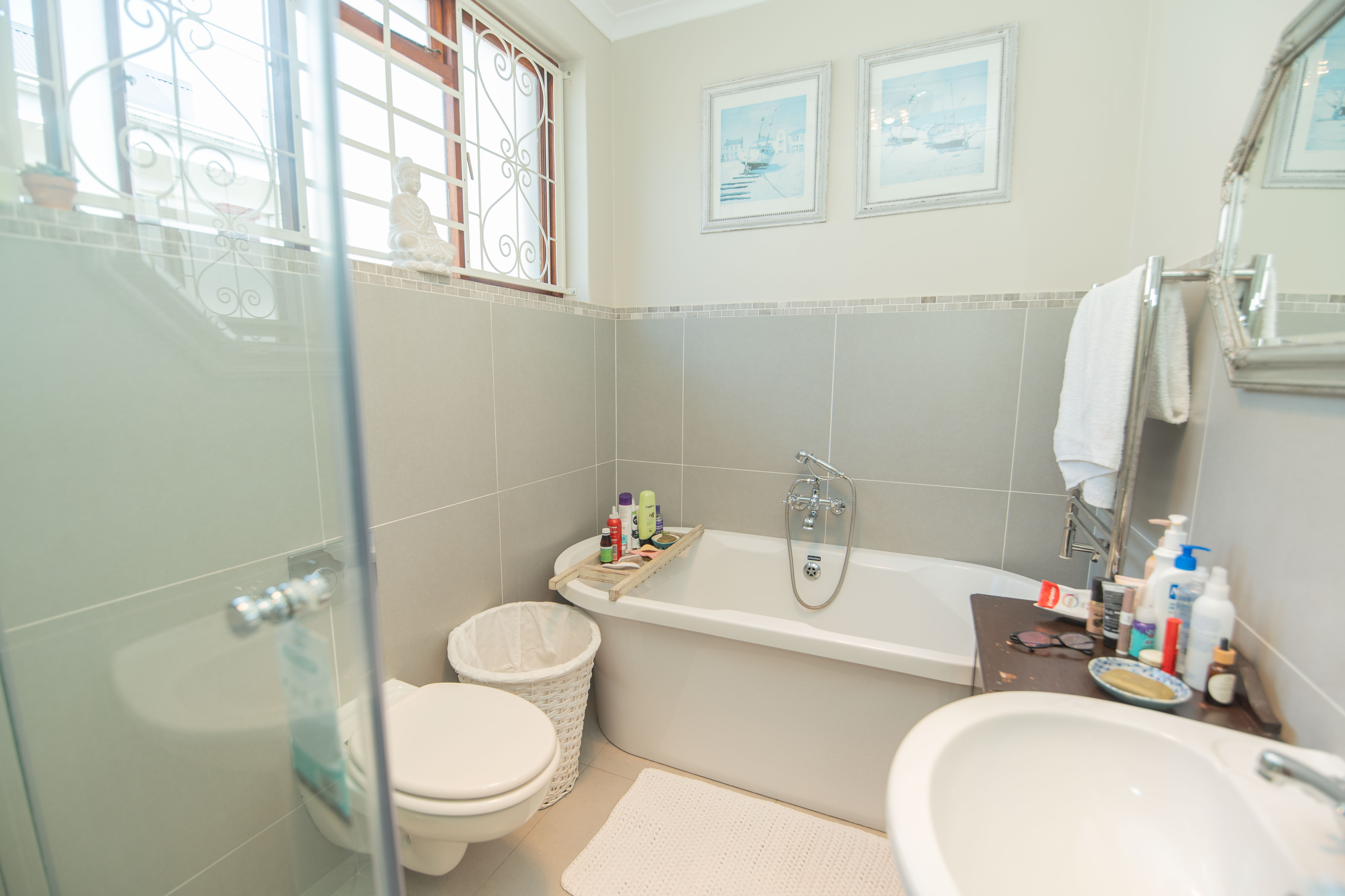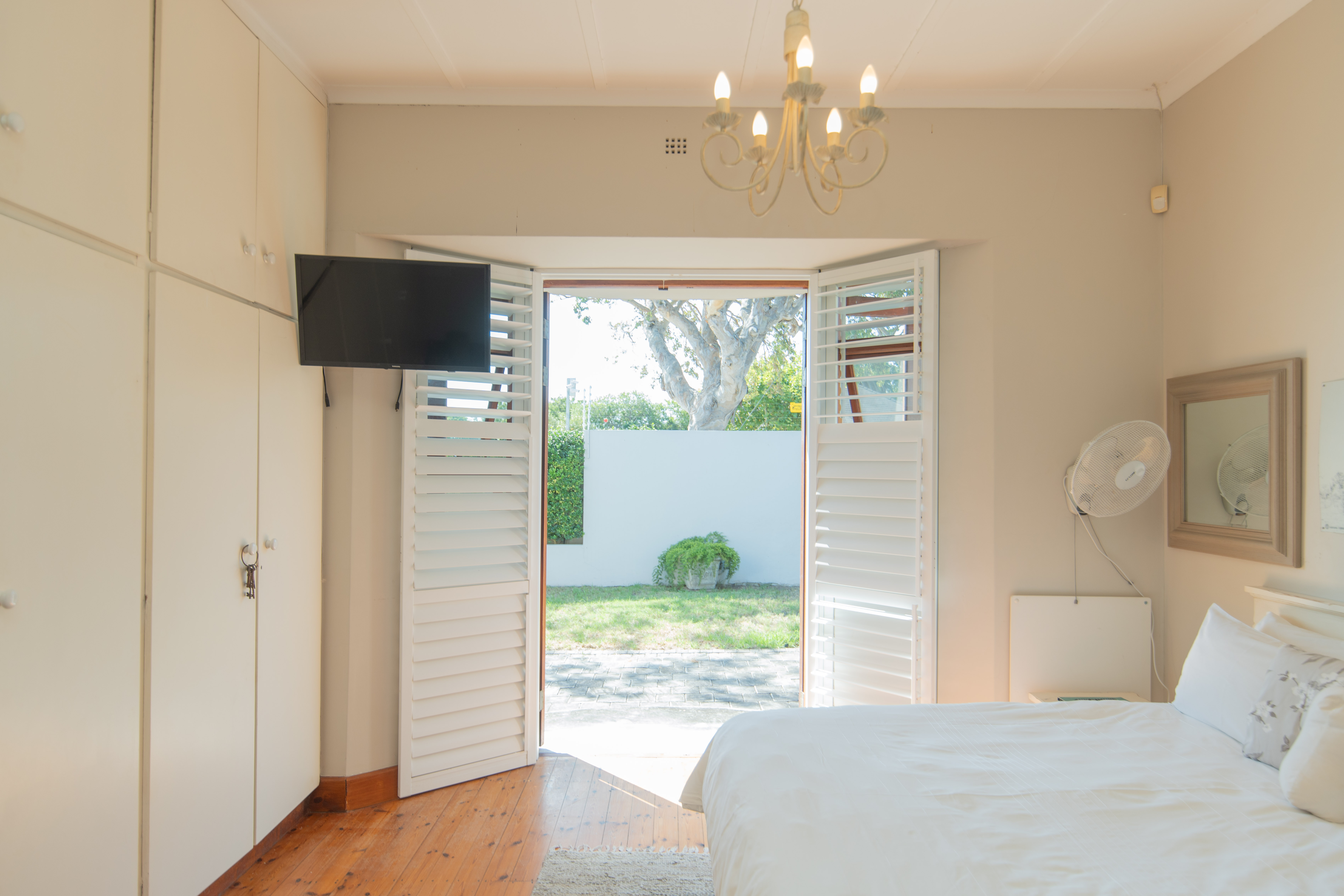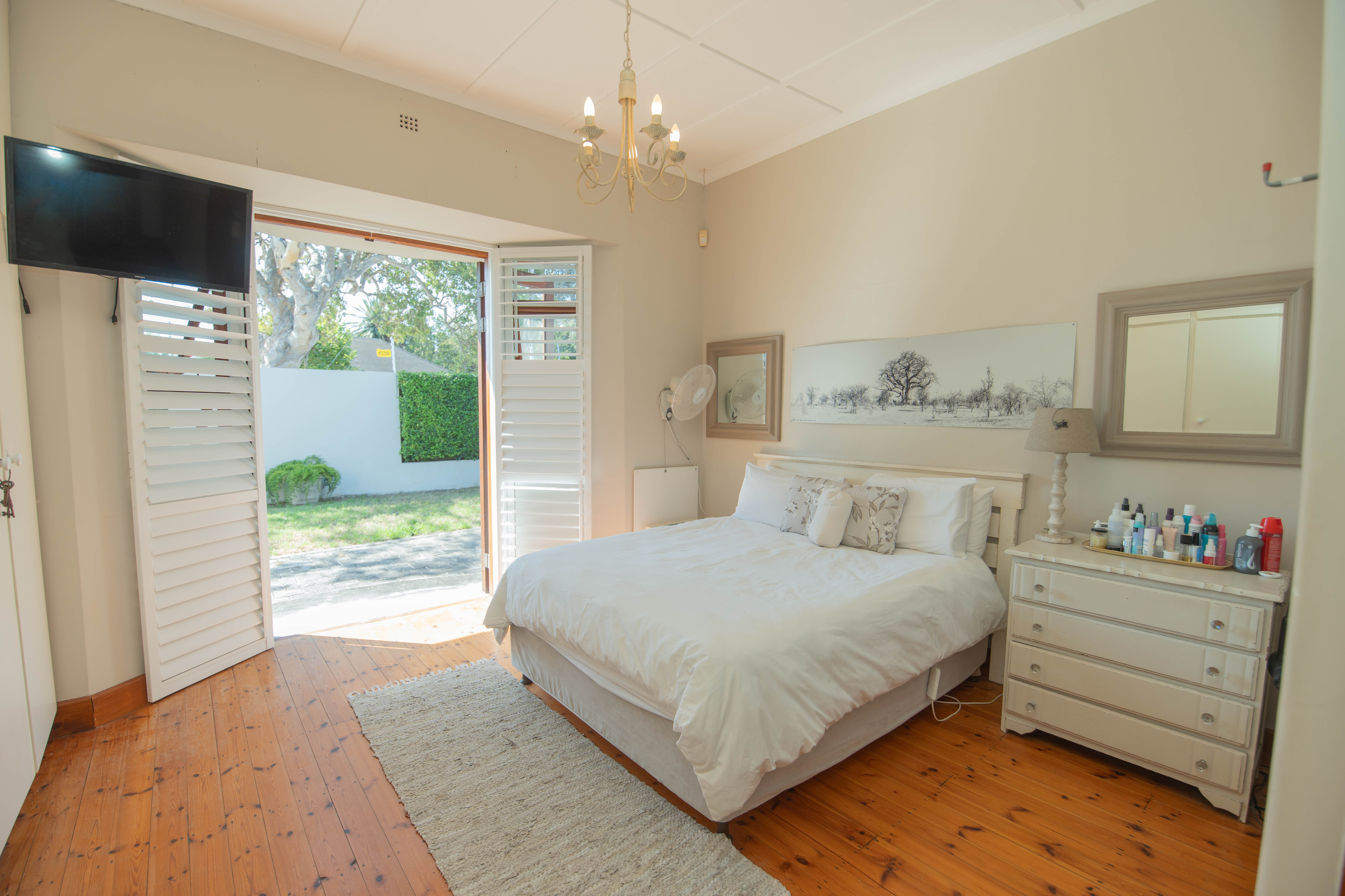 - Master bedroom with American shutters, wall to wall cupboards, en-suite full modern bathroom.