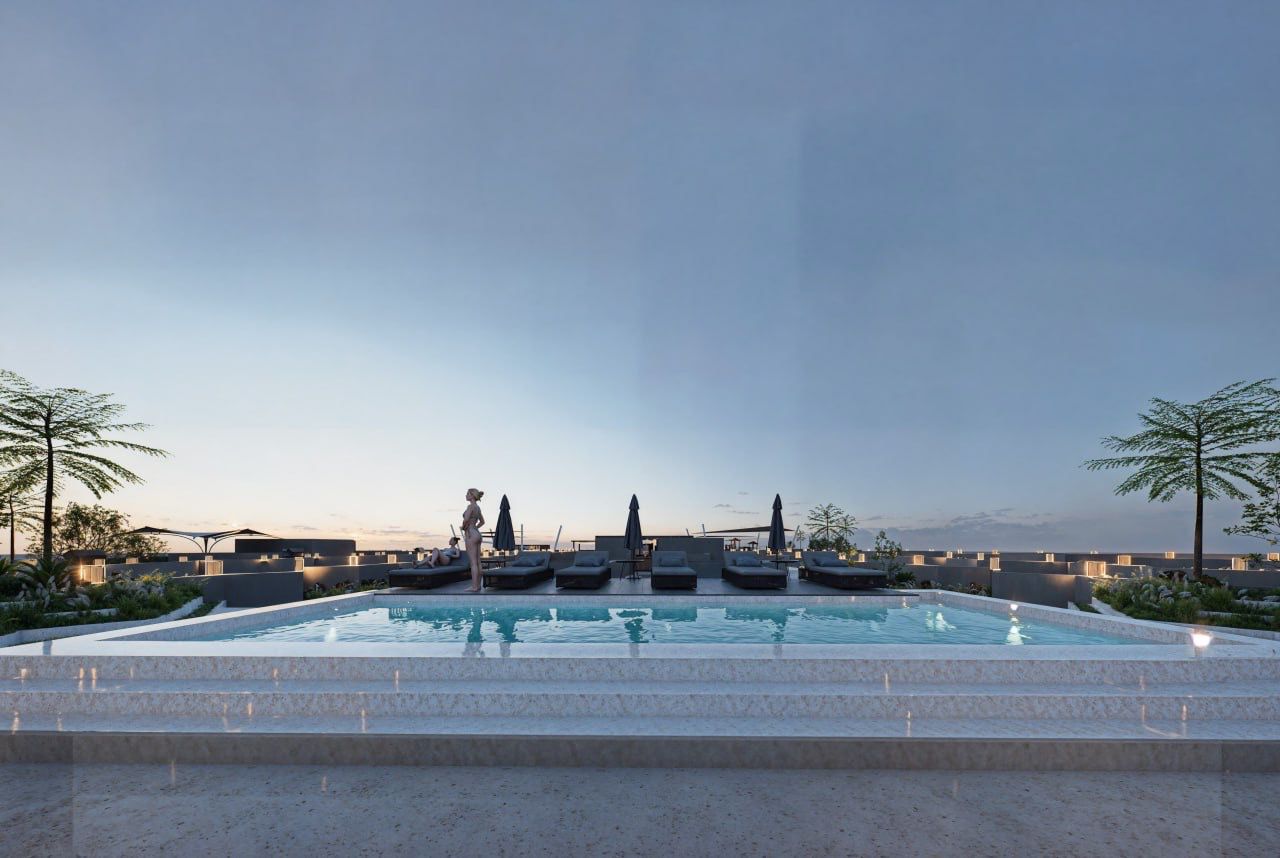 * Two stunning swimming pools (one on the Ground Floor and a second on the breathtaking Sky Roof)