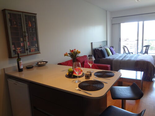 This is a very well appointed , front road facing seventh floor studio apartment in the trendy and fashionable Palermo Soho Buenos Aires . The studio is available to rent from the 1st April 2024 until the 15th May 2024 at a ' monthly rate ' of 1975 Euros inclusive . This is for a required minimum 30 day long rental rate . Alternatively , the studio can be rented at an inclusive rate of 76 Euros daily , for a minimum 4 day tenancy OR any other length of stay by agreement . The apartment is very well equipped with A/C , heating , fitted kitchen , full bathroom , balcony , 43 inch SMART full HD/LED TV / Cable / NETFLIX / Internet , safety box , all necessary bedding and towels , blackout and full width / height curtain etc ... The studio is a non smoking unit .