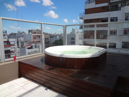 The apartment building also has an outdoor roof swimming pool , sauna , SUM , gym , roof terrace with BBQ's , jacuzzi and laundry . Full daily porterage, secure building and night time security service . A reliable maid can be organised for extra service payment . The immediate Palermo Soho areas have a whole host of bars , fine restaurants , real coffee houses , the best steakhouses , great burger bars , craft markets , bookshops , art studios , craft beer outlets , fashion shops , a planetarium , nightclubs and more ... There is an extensive bus and subway train system within 8 minutes walk from the studio .