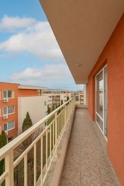 For sale is a studio, located on the 4th floor in the well-maintained complex Nessebar Fort Club – right across from the Aqua Park and only a 10-minute walk from the beach and the centre of the resort. The complex is like a resort on its own, offering 6 swimming pools, a seasonal restaurant, combined sport field, mini golf, year round reception and live security, seasonal supermarket. There are 3 big supermarkets nearby – LIDL, MM and Mladost.