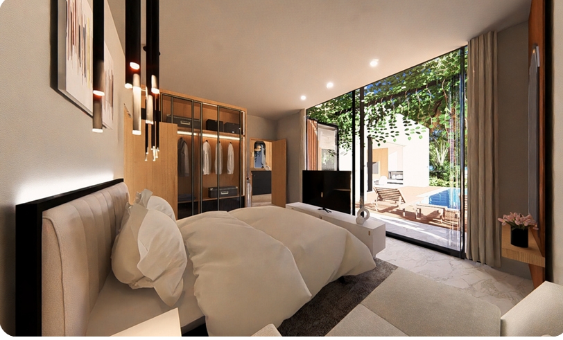Enjoy the rooms, calming and relaxing design with comfortable beds and nature view through the window, experience what it is like to walk through and look around Villa with their visualization, a masterpiece of fine craftsmanship and coastal harmony. Using local and high quality materials processed to the last detail