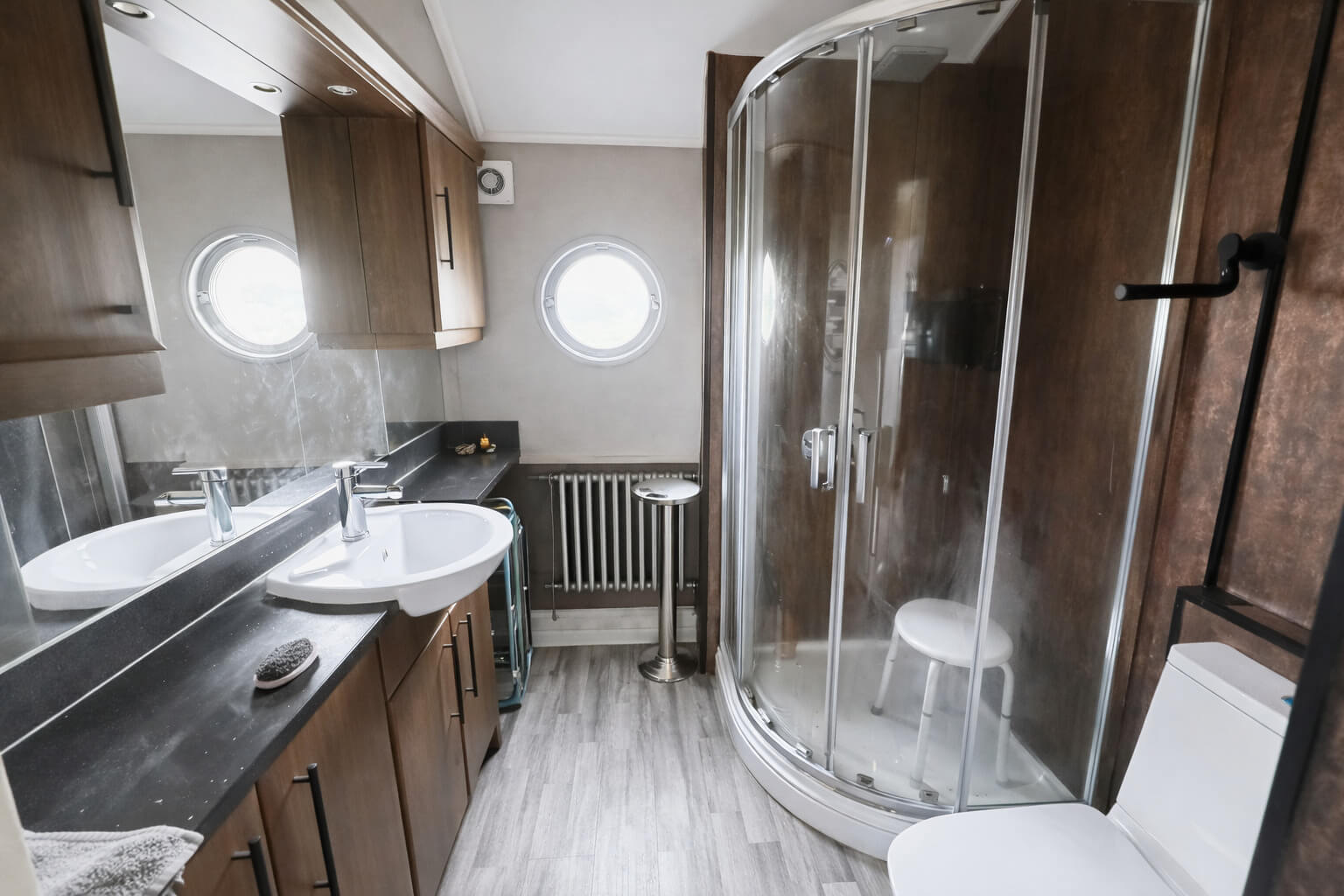 A central corridor leads to the shower room, fitted with: