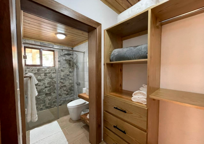 Outdoor Half-Bath: Conveniently located for guests and the pool/jacuzzi area.