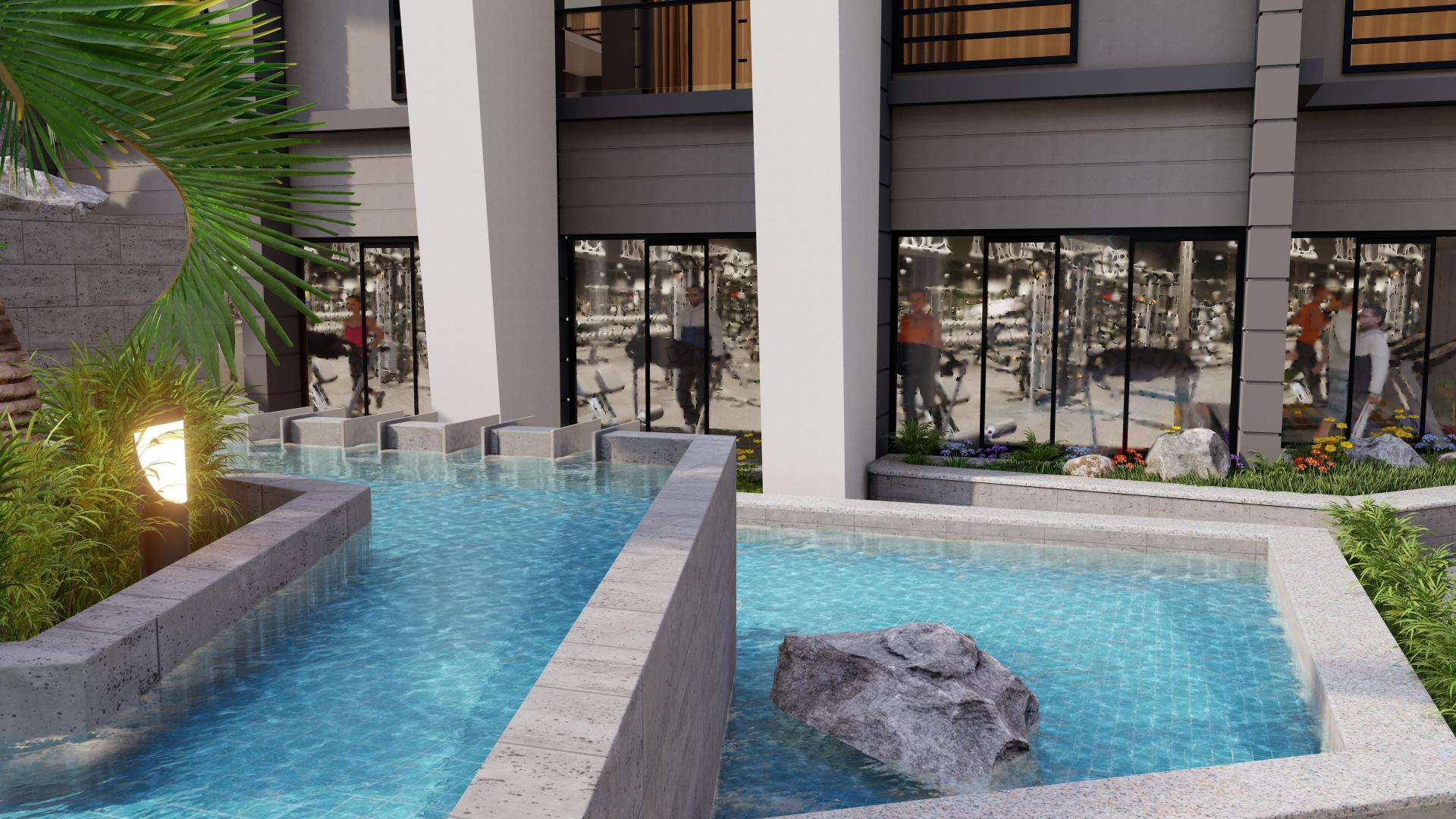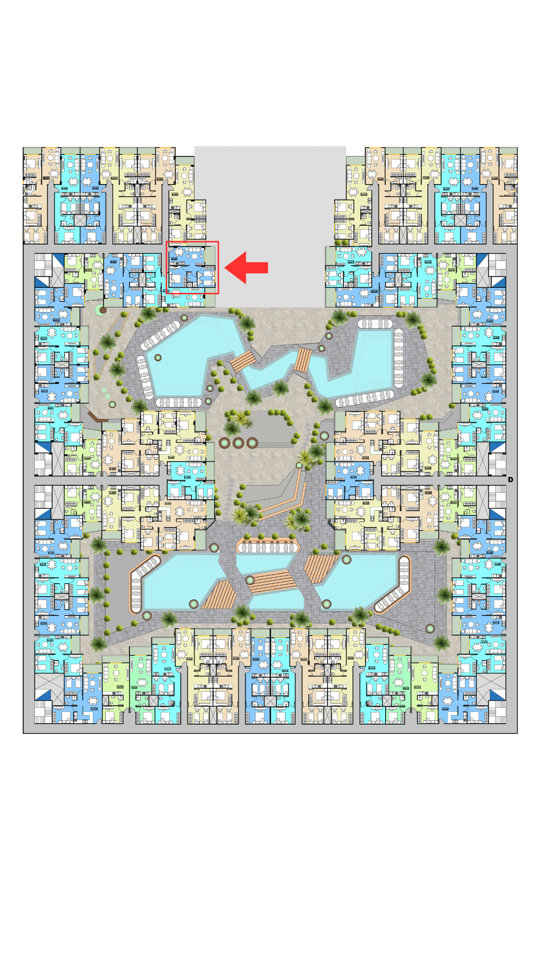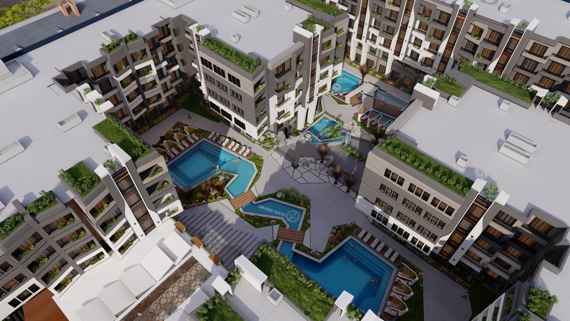 Wake up to views of the Main Airport Road, pool & landscaped gardens in Grand Gate, Hurghada.