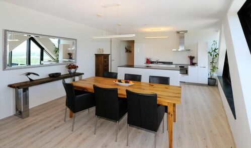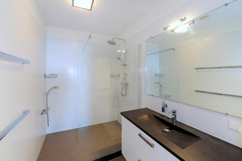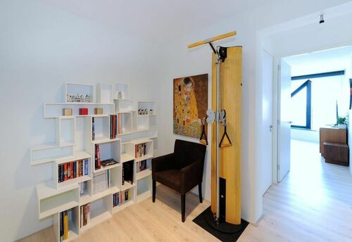 De indeling omvat een royale woonkamer met open keuken, een comfortabele slaapkamer, een ruime studeerkamer of logeerkamer, een moderne badkamer met grote inloopdouche, een apart toilet, een bijkeuken met wasruimte en een gastvrije entreehal. Het appartement is voorzien van vloerverwarming en -koeling, evenals een geavanceerd warmteterugwinningsventilatiesysteem, wat zorgt voor een aangenaam binnenklimaat gedurende het hele jaar met een uitstekende energie-efficiëntie (energielabel A).