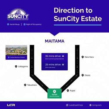 Located in the serene environment of Karshi, around the Federal Capital Territory of Abuja, Sun City Green and Smart Estate sets a new standard for eco-conscious living. This estate is perfect for those looking to invest in a forward-thinking community that values both environmental sustainability and innovation.