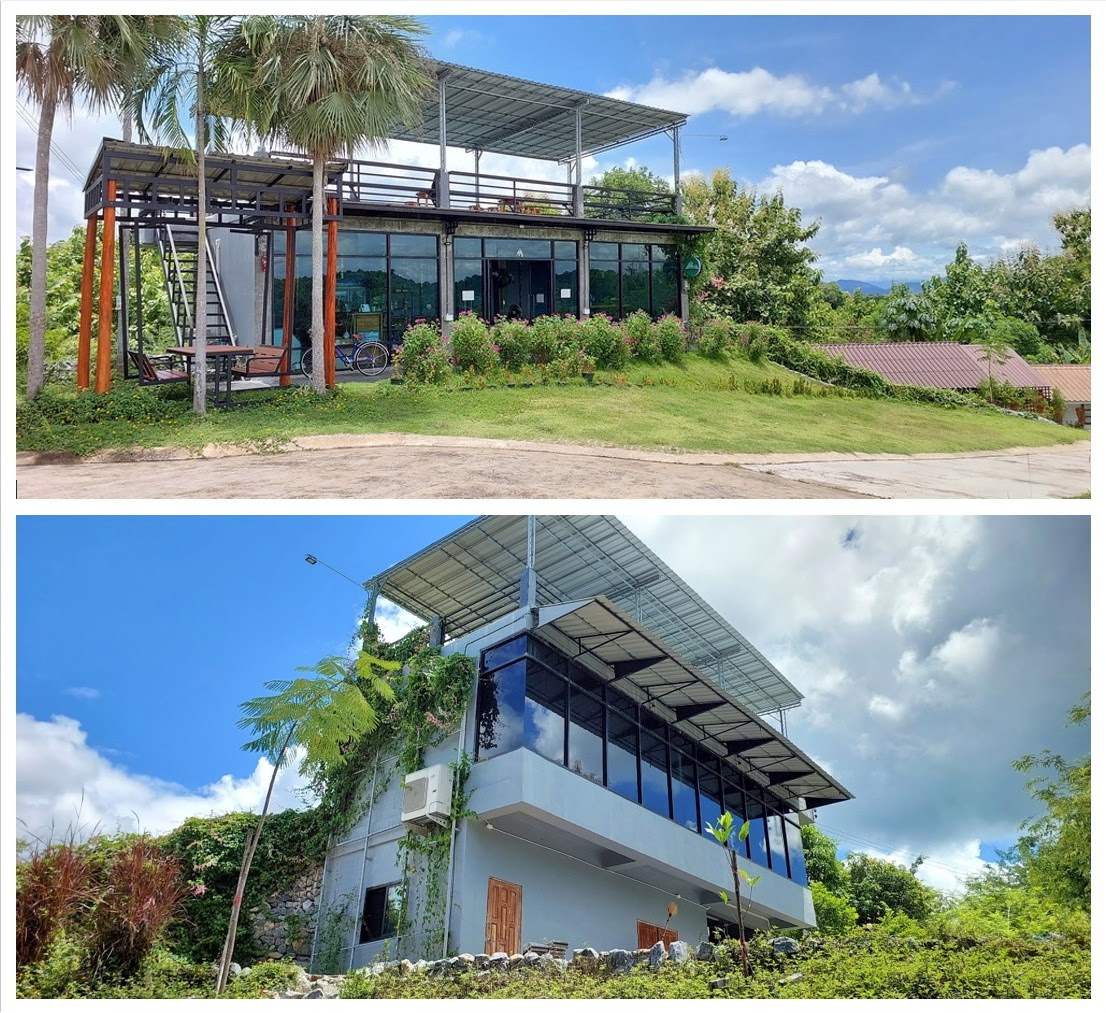 ➤ A 2-storey building, the upper part is a big living room with coffee bar 78 sqm. with 1 air conditioner, the lower part is 60 sqm. for a storage for garden equipments and others, toilets and bath with 2 water heaters and a staff bedroom.