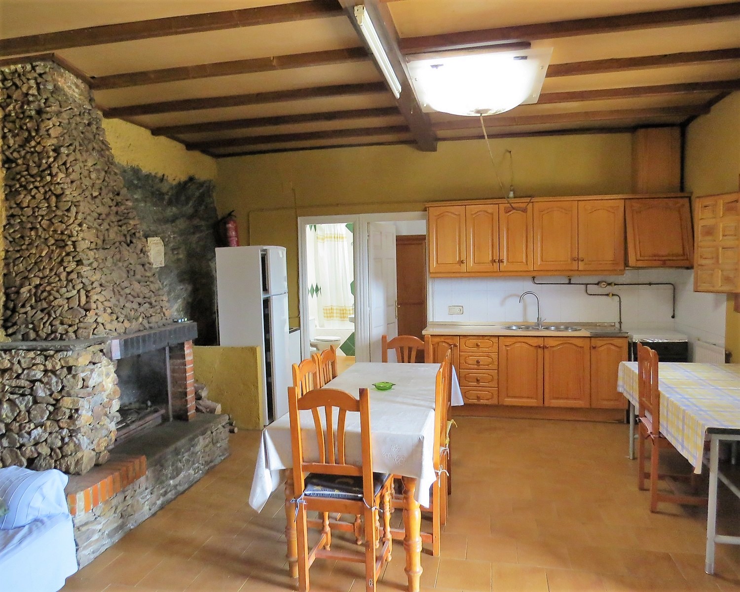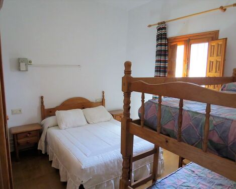 The largest property, a short distance from the other two cortijos, has four double bedrooms and two bathrooms, one ensuite. An open plan kitchen/dining/living area with fitted log burner. The kitchen has fitted base and wall units, cooker and fridge. The spacious living area has comfortable sofas and a large dining table.
