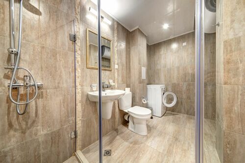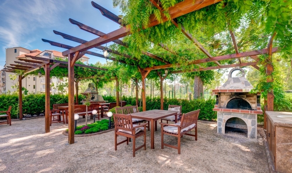 We offer for sale a three-room apartment in a luxury complex. The complex provides customers with many amenities: 2 outdoor swimming pools, a children's playground, a barbecue area equipped with 2 barbecues and sofas, an indoor heated pool, a luxurious spa center with a Finnish sauna with Himalayan salt, an infrared sauna, a steam bath, a shock bucket, an area for relaxation with a starry sky, offices for massages and cosmetic procedures, a spacious foyer with Italian millwork, a beautiful garden, a tennis court and a football field /located in the park next to the complex/. The availability of year-round service, security, spa center and indoor pool makes the complex attractive for year-round use. The apartment has brand new stylish furniture and equipment. It is located on the second (first above ground) floor. The living room and one bedroom open onto a spacious terrace with a view of the pool. Annual maintenance fee is 1,429 euros. The use of steam bath, Finnish sauna with Himalayan salt, infrared sauna, shock bucket, relaxation area with sunbeds in the spa is included in the maintenance fee and is free for the owners.