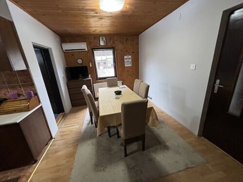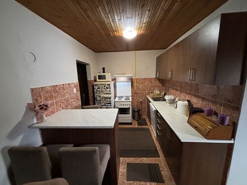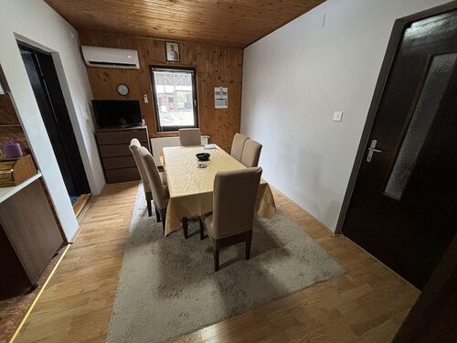 Ground-level three-bedroom house in a quiet part of Melenci, ideal for families or those seeking space and privacy. The house, with a total area of 140 m², is situated on a spacious 15-acre plot, including a 2.5-acre garden, and is built with durable materials. Set back from the main street, it offers peace and quiet.