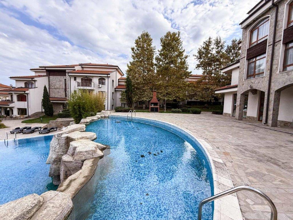 IBG Real Estates is pleased to offer this spacious and bright 2-bedroom apartment with 2 bathrooms, located in the modern gated complex The Vineyards Resort in the charming seaside town of Aheloy.