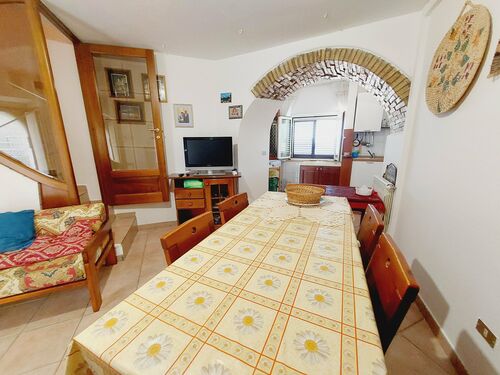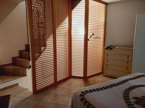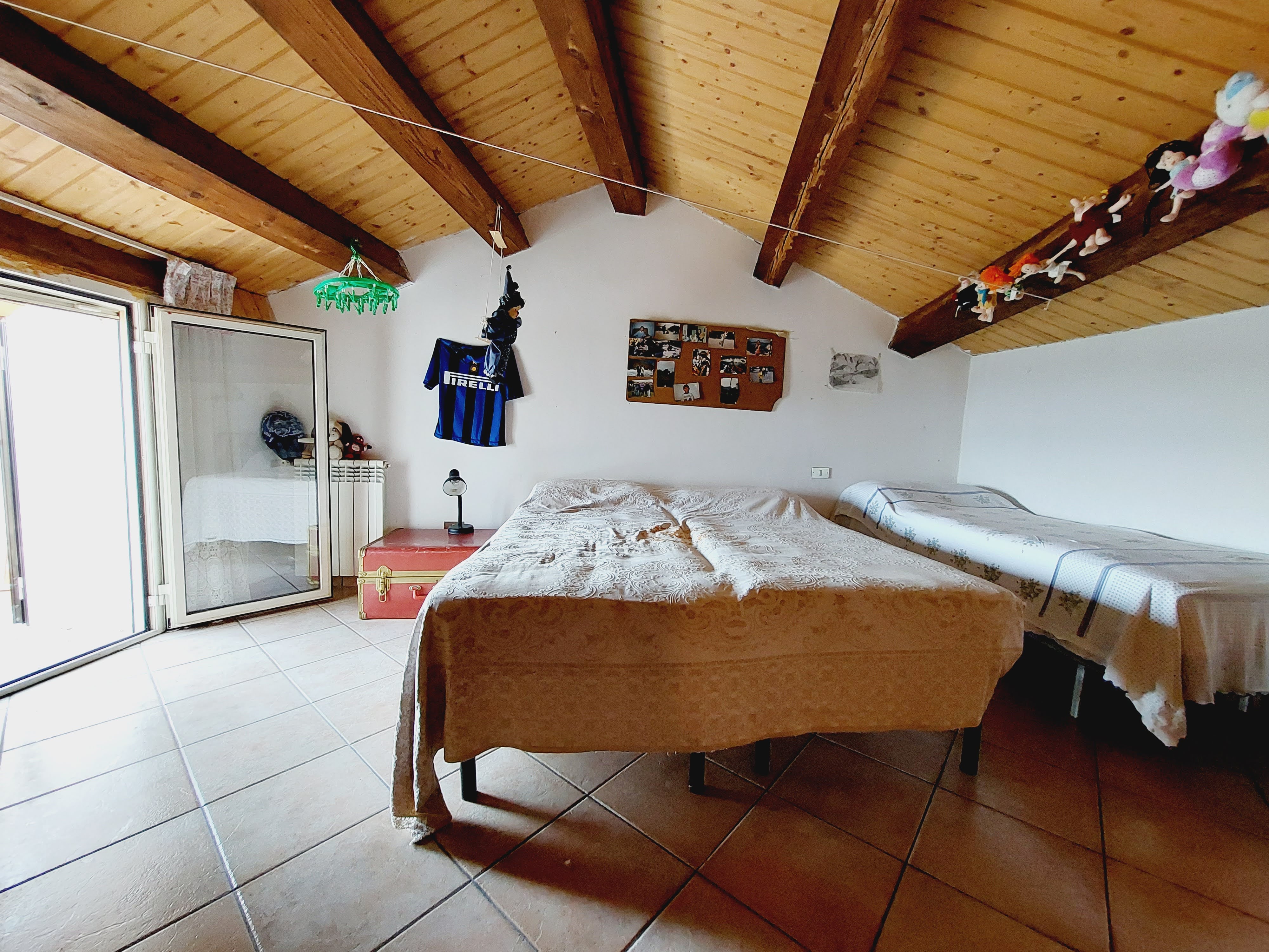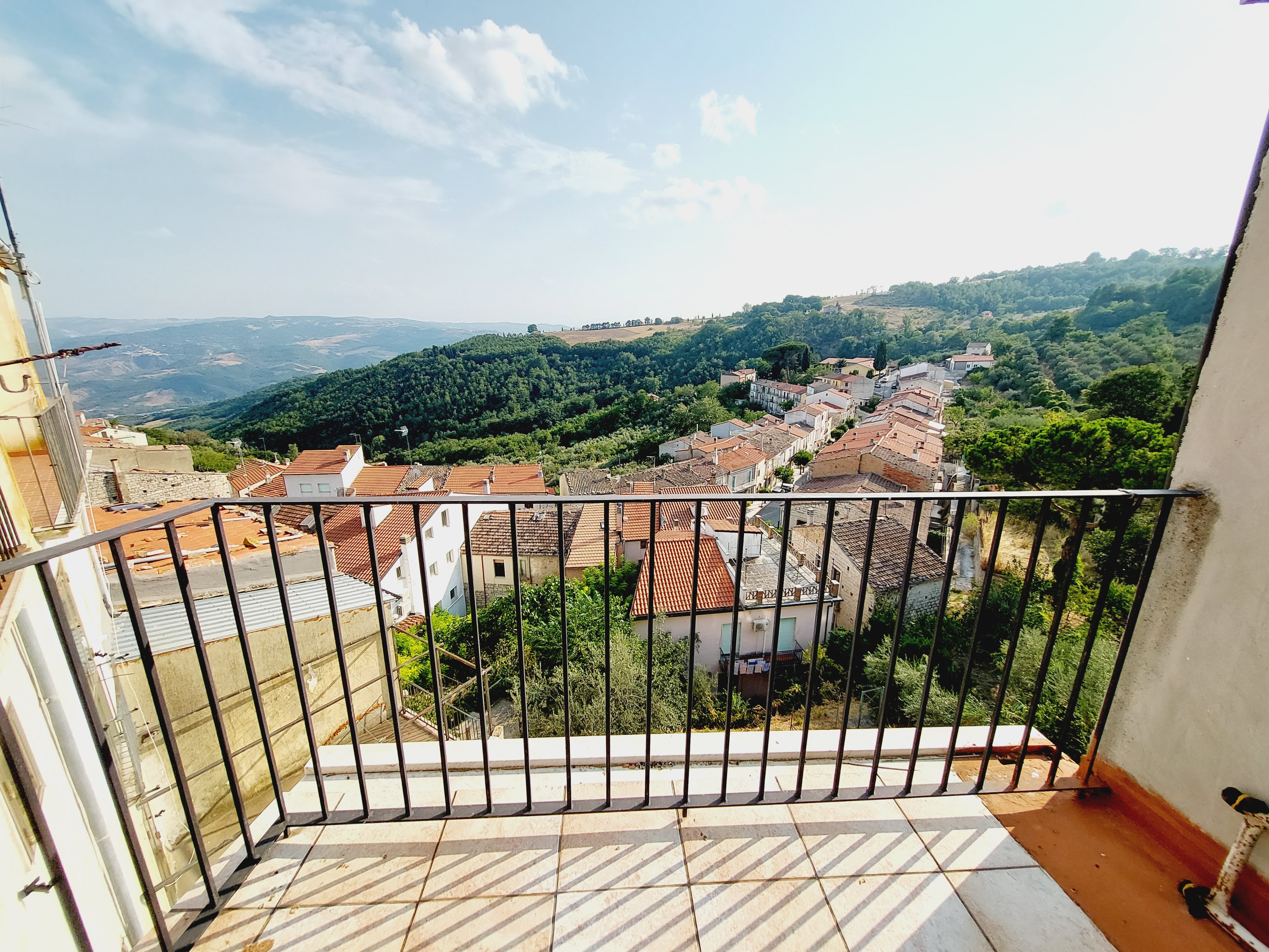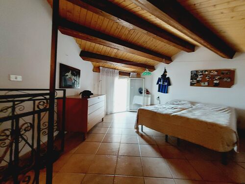 The first floor features a double bedroom with a balcony and private bathroom. Going up to the second floor, there is another spacious double bedroom, featuring a charming wooden ceiling and a panoramic terrace offering spectacular views of the village of Castelbottaccio.