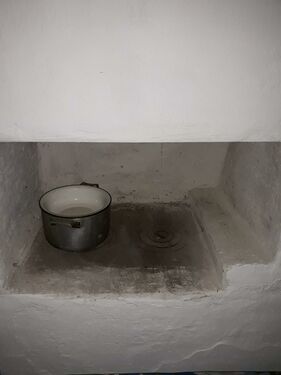 There is a traditional stove in the kitchen area which has been used to supply heat to the house as well as for cooking.